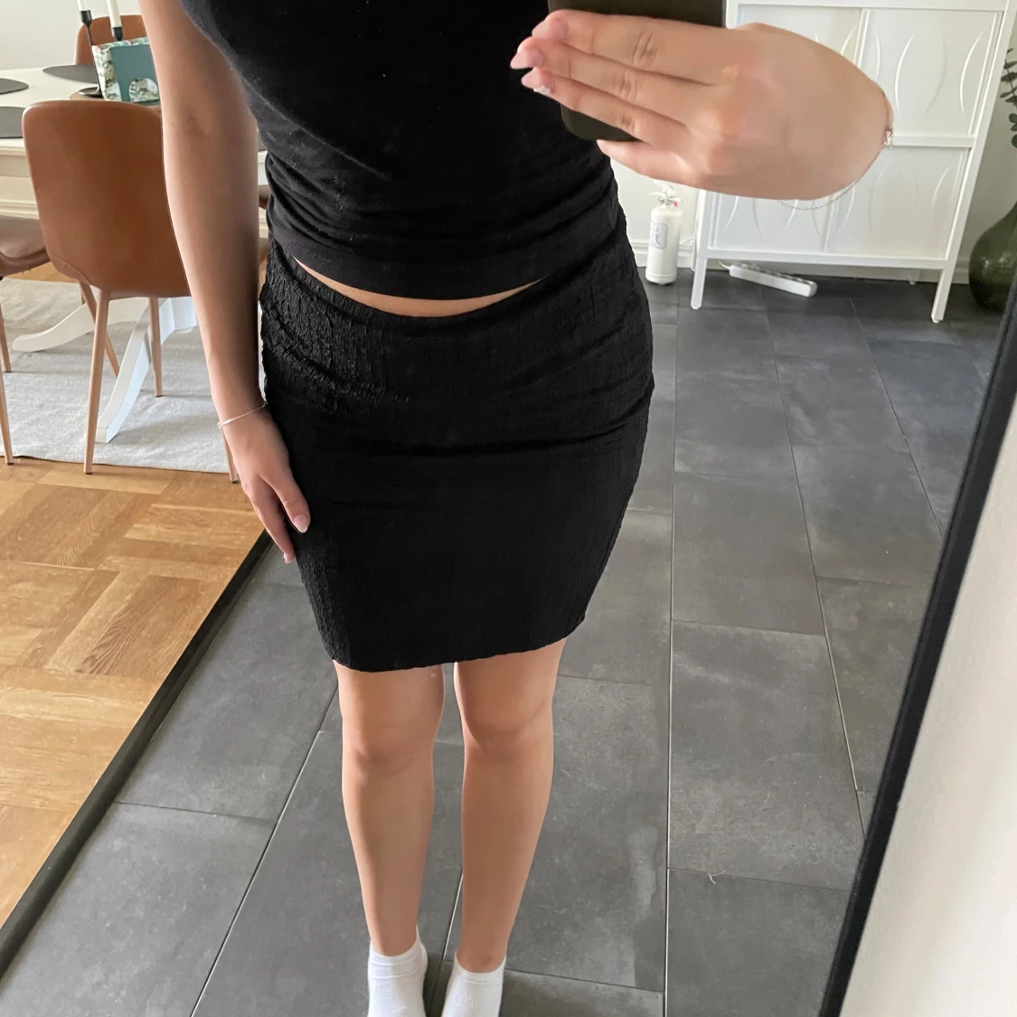Helt ny svart mini kjol med lite struktur, väldigt fin och skönt material. 💕