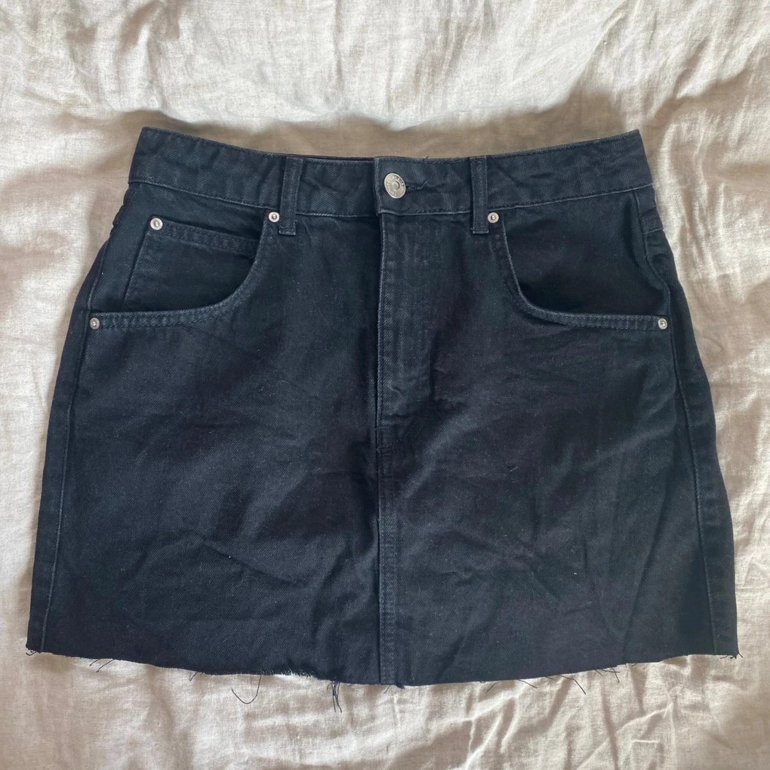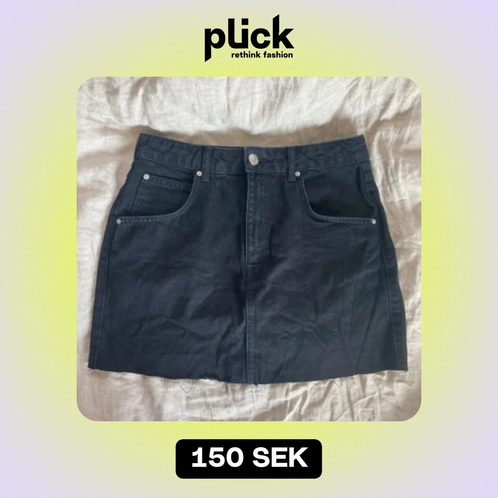 Svart jeans kjol från Gina, köptes på plick men passade inte 🤍 avklippt, står 38 men skulle snarare säga 36/S beroende på hur man vill att den ska sitta! Skriv vid frågor