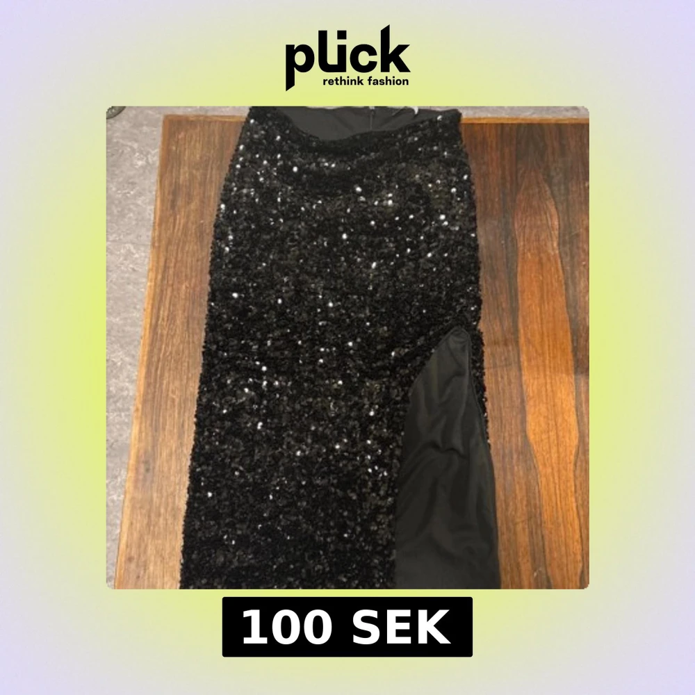 Säljer en lång svart kjol från Gina Tricot, täckt med glittriga paljetter och med en snygg slits på sidan. Kjolen har en figurnära passform och är perfekt för att sticka ut. Materialet är polyester och kjolen har dragkedja i sidan.