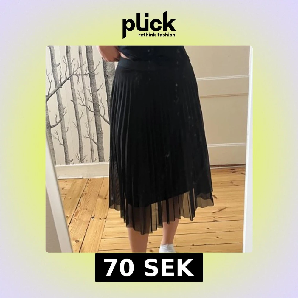 Säljer en svart plisserad kjol med midilängd. Kjolen har ett tunt, lätt material och bred linning i midjan. Perfekt för dig som gillar en klassisk och stilren look.