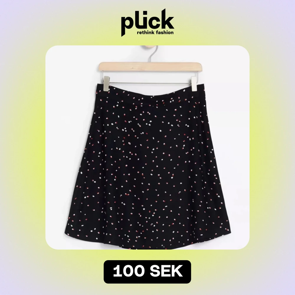 Superfin svart kjol från Lindex med små vita och röda prickar. Kjolen är i storlek 36/S och har en bekväm passform och fint fall. Perfekt för både vardag och finare tillfällen! 🖤