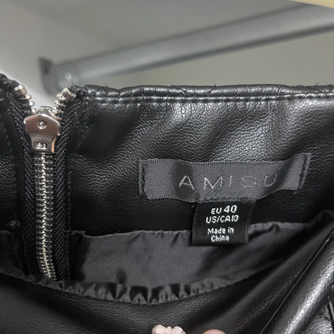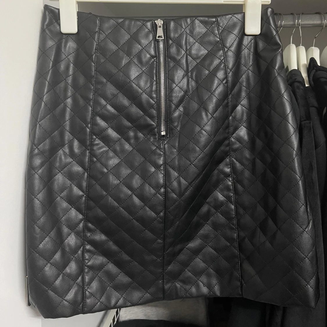 Snygg svart quiltad kjol från Amisu i storlek EU 40. Kjolen har en cool dragkedja baktill och är perfekt för höst och vinter. Den är gjord i ett skinnliknande material som ger en edgy look. Passar både till vardags och fest!