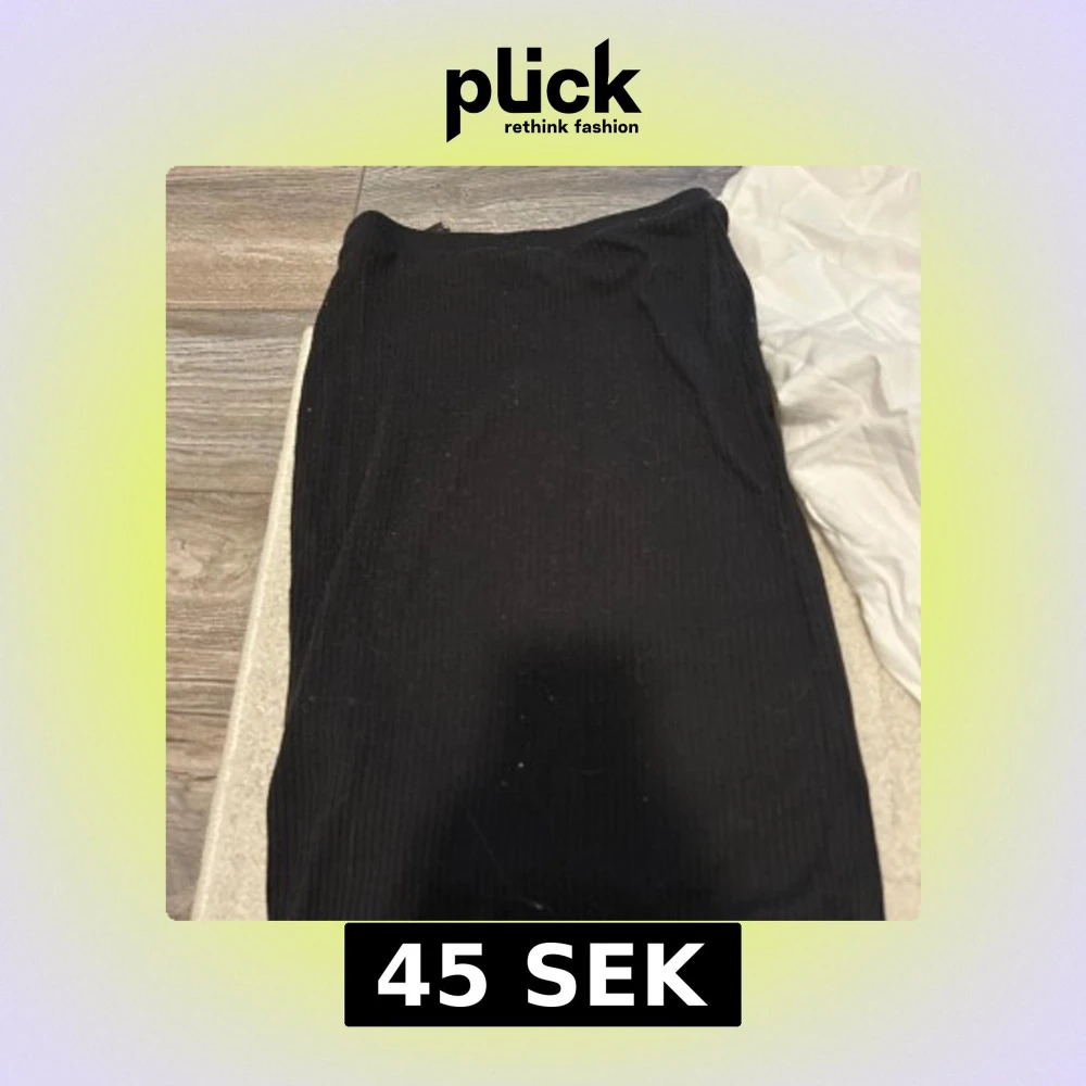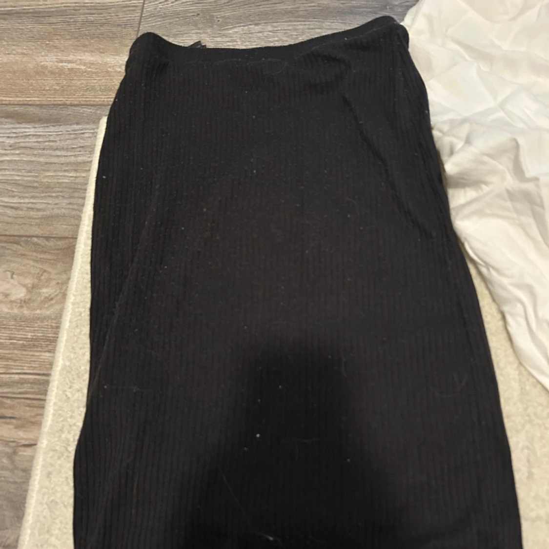 En svart ribbad kjol från H&M med enkel och stilren design. Kjolen är stretchig och har en rak passform som passar till många olika looks. Perfekt för dig som gillar minimalistisk stil.