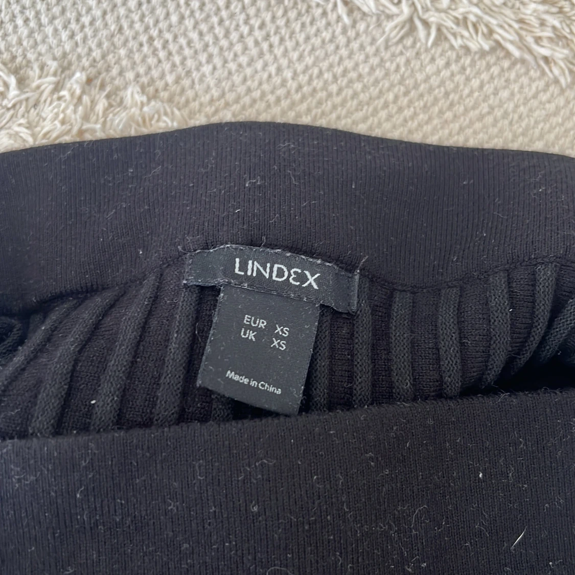 Svart ribbad kjol från Lindex i storlek XS. Kjolen är rak och har en elastisk midja för skön passform. Materialet är mjukt och stretchigt, perfekt för dig som gillar enkel och stilren look.