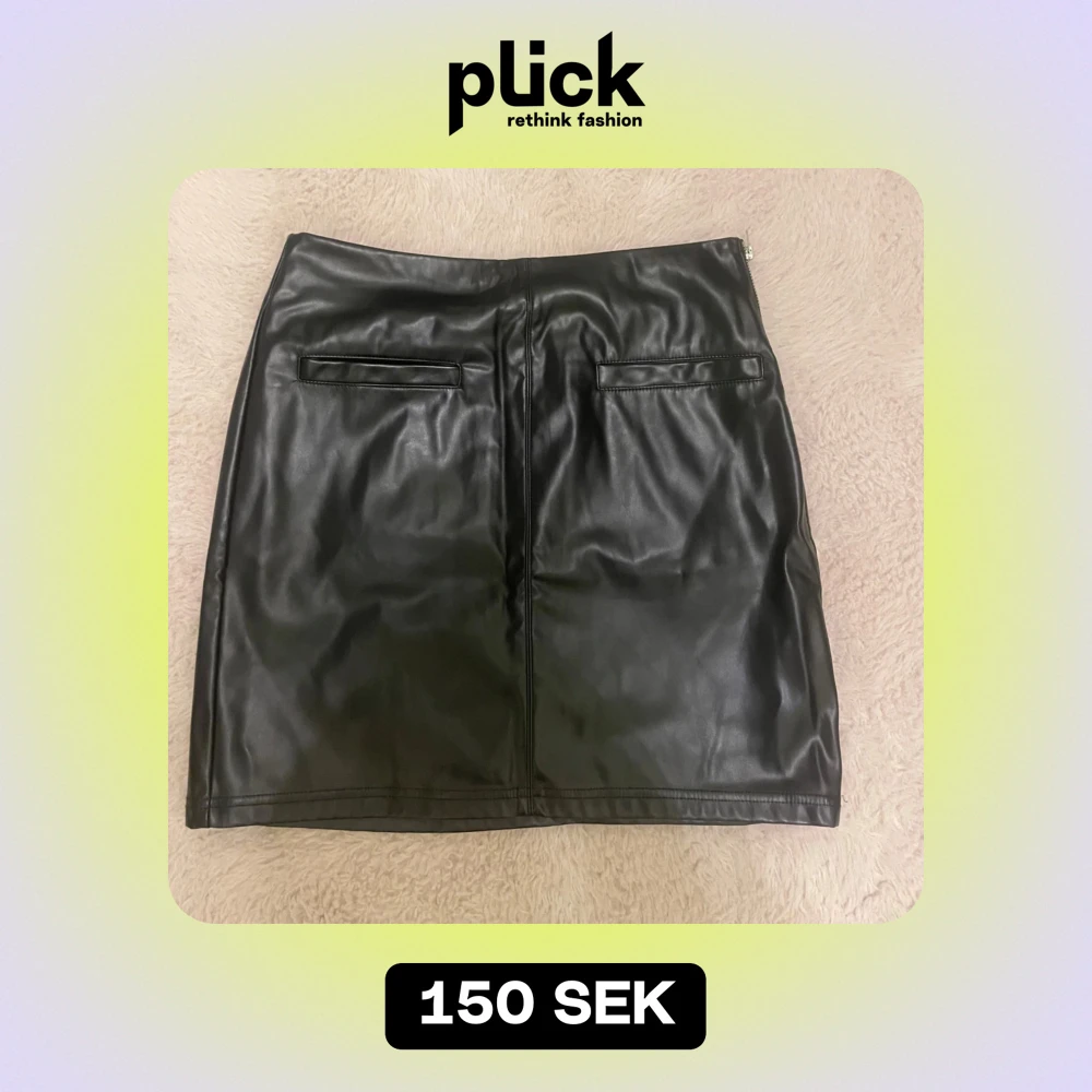 Snygg svart skinnkjol i kort modell. Perfekt för en kväll ute eller en cool vardagslook. Kjolen har en dragkedja på sidan och stilrena fickdetaljer. Passar perfekt till både höga klackar och sneakers.