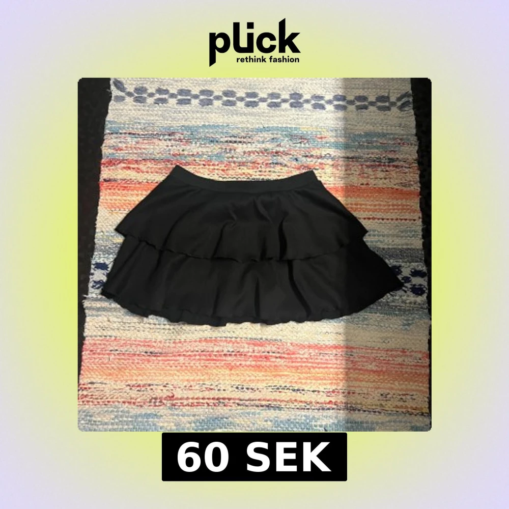 Supersnygg svart kortkjol från 157 med dubbla volanger som ger en cool och lekfull look. Kjolen har en elastisk midja och är gjord i ett lätt, skrynkligt tyg som känns bekvämt. Perfekt för dig som gillar att sticka ut med volanger och svart basic.