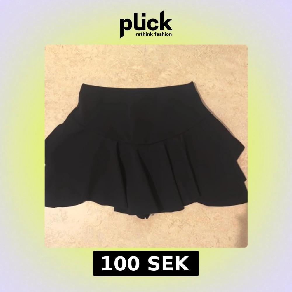 Supersnygg svart kortkjol med volang och inbyggda shorts. Kjolen har en hög midja och är perfekt för dig som vill ha både stil och komfort. Materialet känns mjukt och följsamt, och den svarta färgen gör den lätt att matcha med allt.