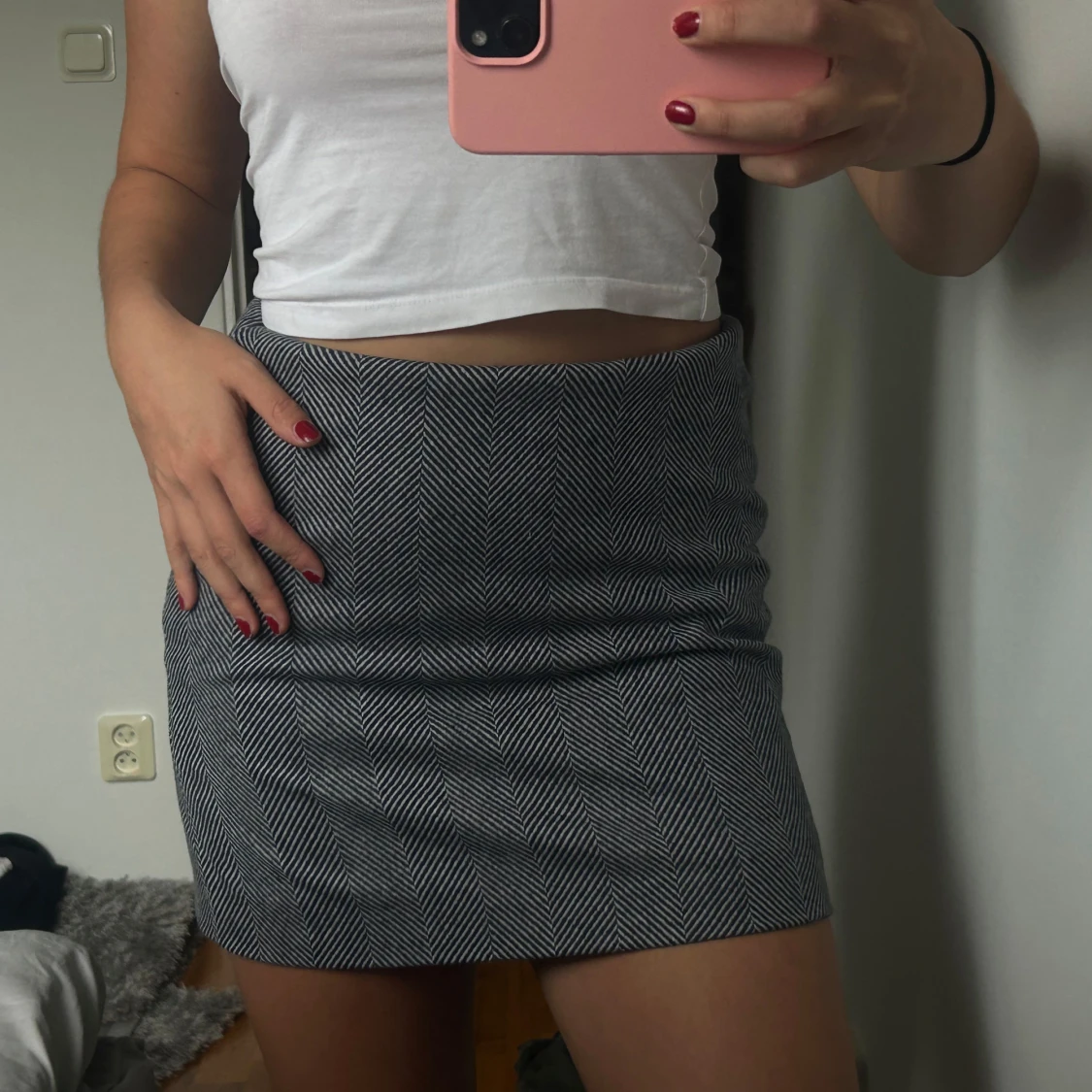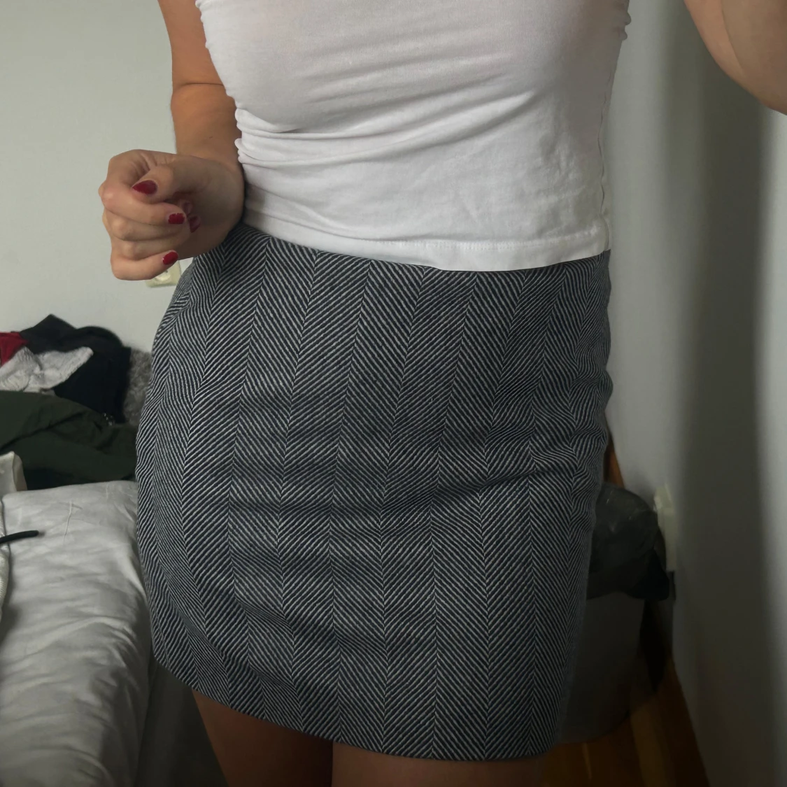 Säljer en snygg kortkjol med svartvitt fiskbensmönster. Strl 36❣️