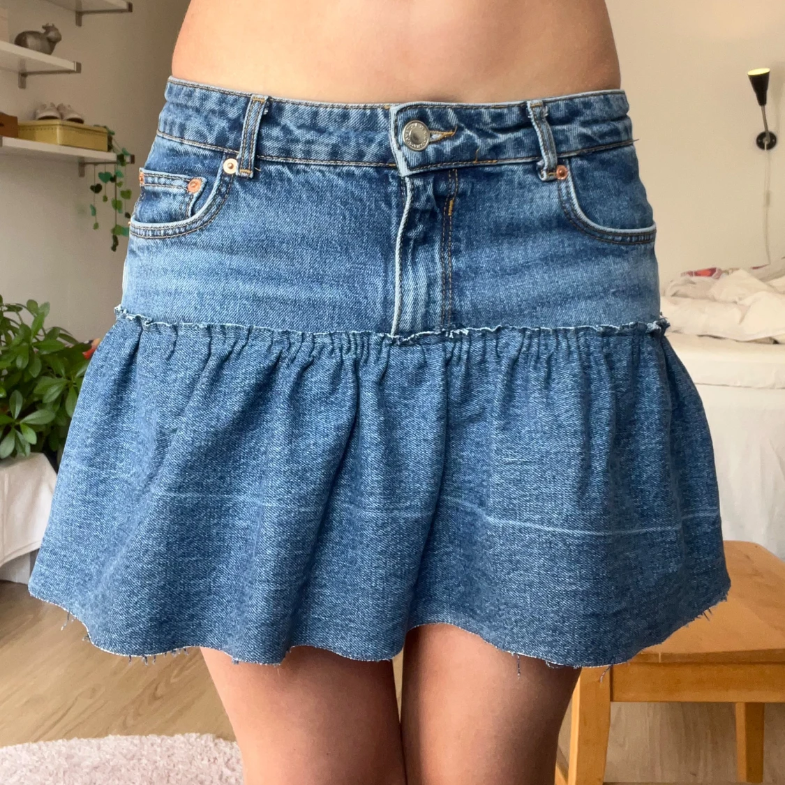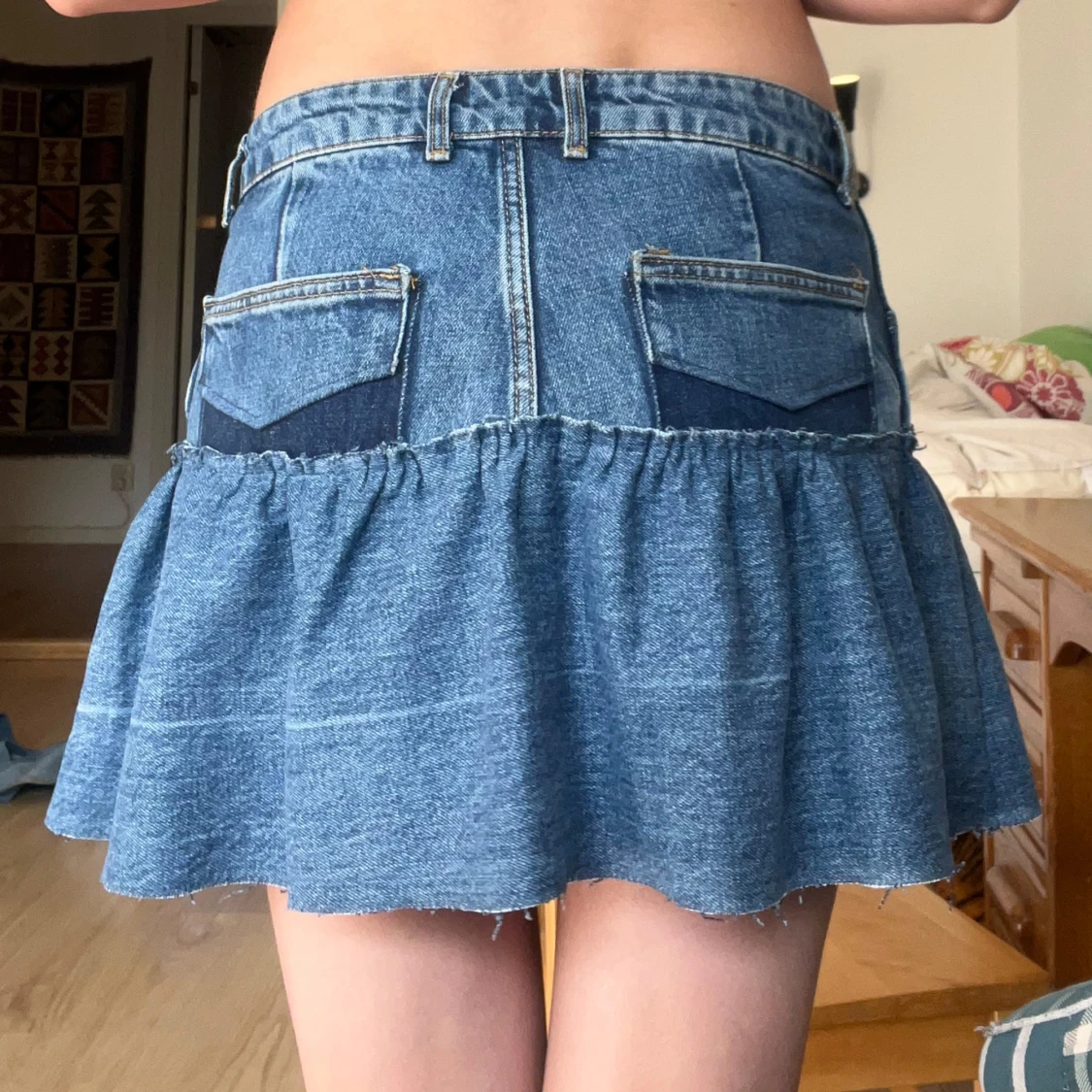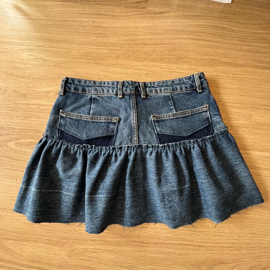 Säljer denna skitsnygga jeanskjol jag sytt själv från ett par jeans. Midjemått rakt över: 38cm, längd: 32cm. Skriv för fler bilder, frågor och prisförslag💕💗