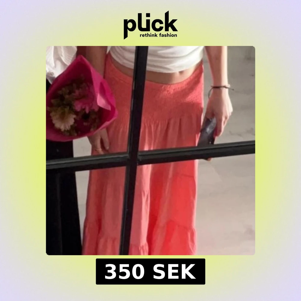 Snygg korallfärgad långkjol med volangdetaljer. Perfekt för en somrig look. Från quinte, endast använd en gång!! Nypris 600kr