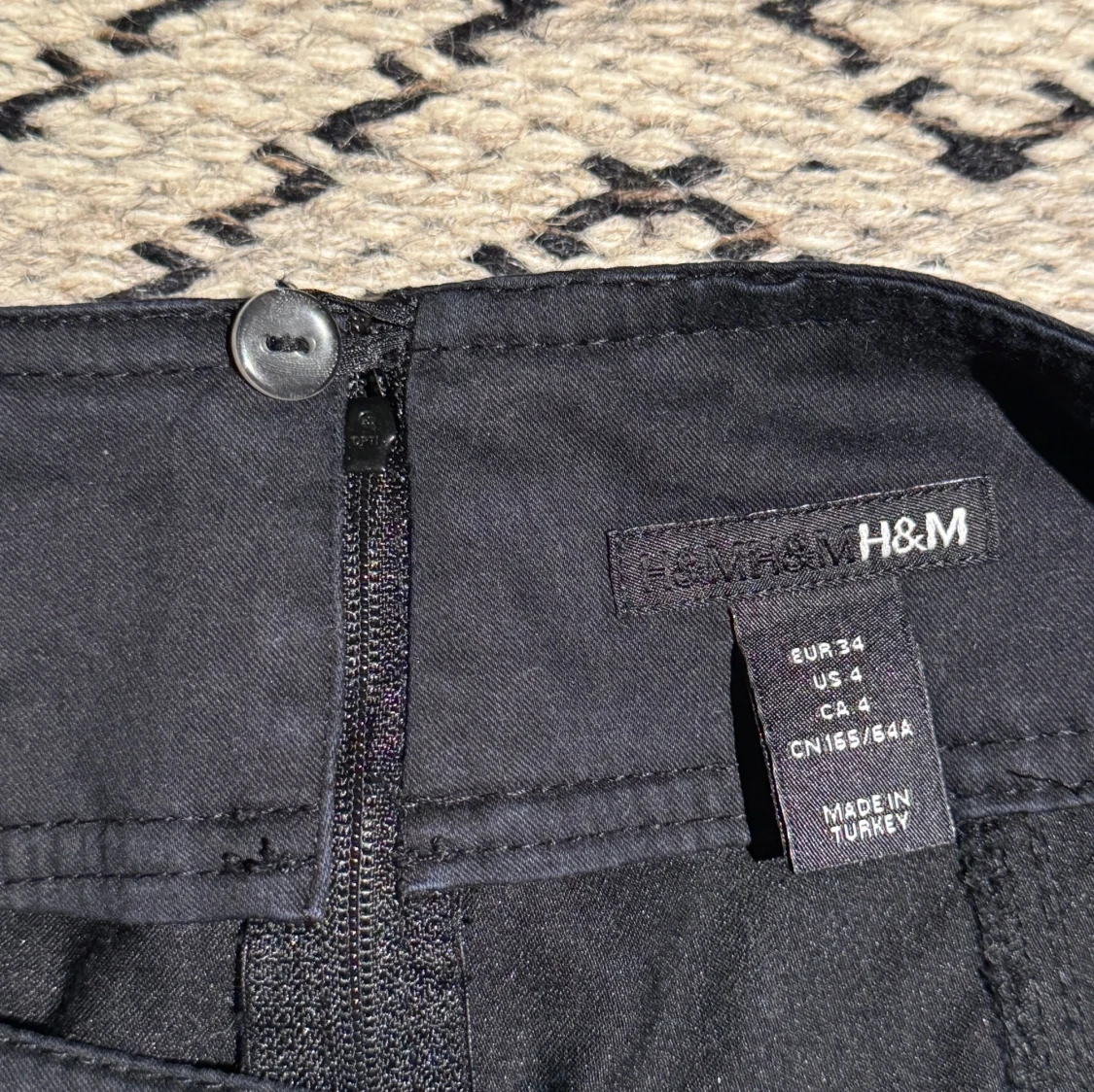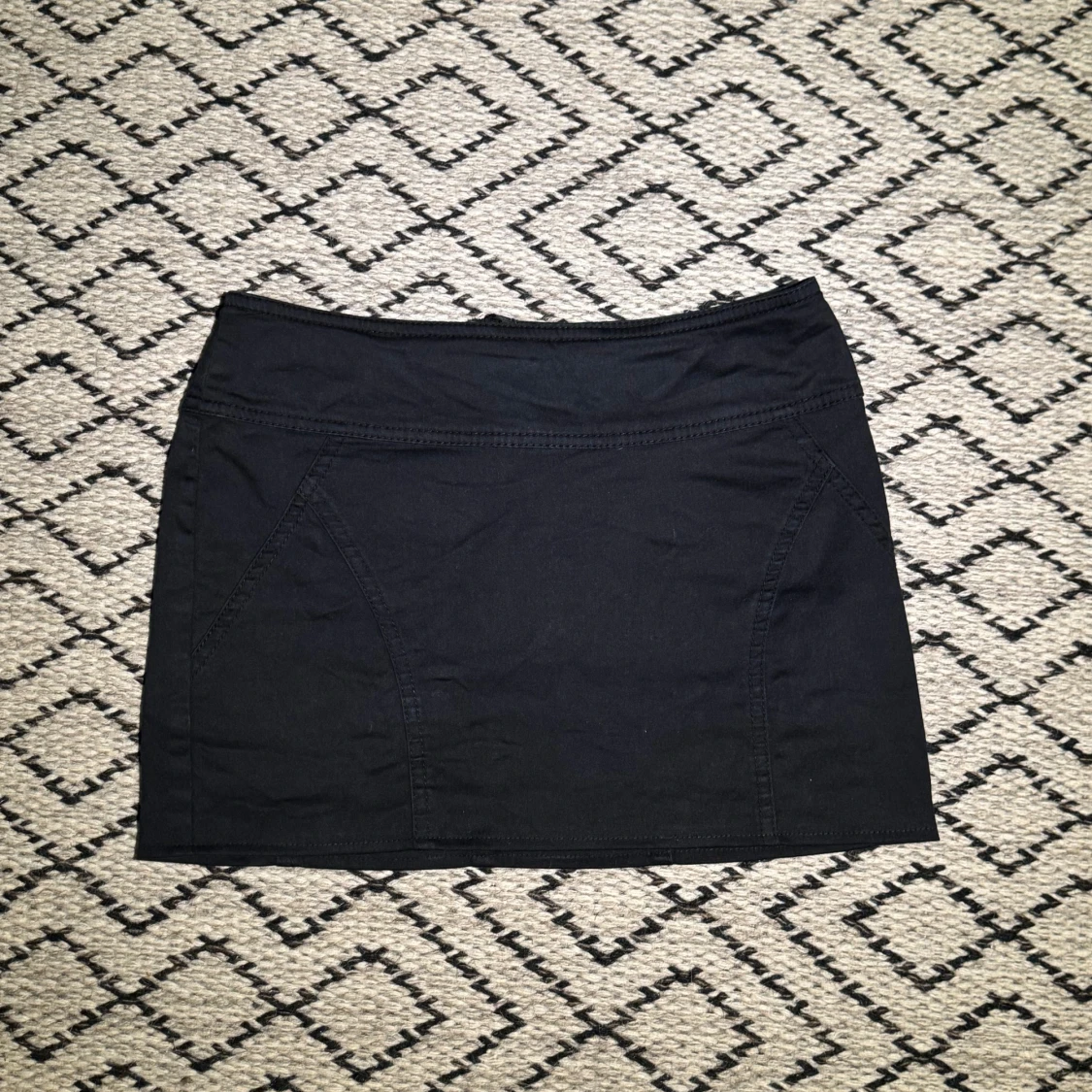 Snygg svart minikjol från H&M med dragkedja bak. Perfekt för en stilren look. Tillverkad i jeansmaterial och går så bra att klä upp eller ner! Gillar att bära den lågmidjad.
