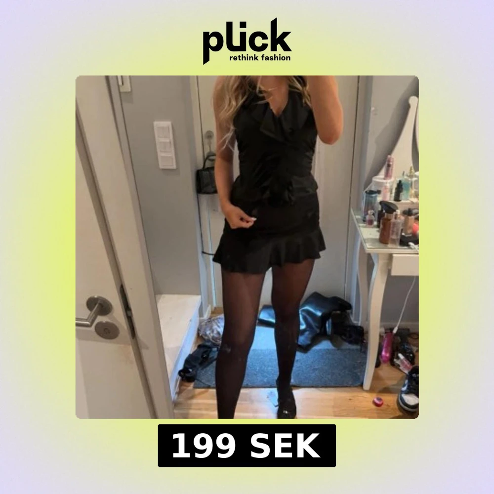 Supersnygg svart minikjol med volangdetalj längst ner på kjolen. Materialet är glansigt och känns lyxigt, perfekt för att sticka ut. Passar dig som gillar trendiga och feminina plagg. Den är lågmidjad. Köpt i Australien på Glassons nypris 349kr💕säljer även toppen