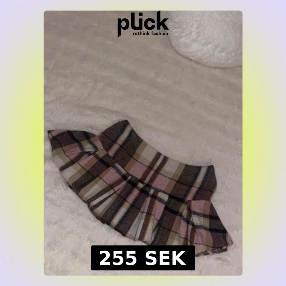 Supersöt kortkjol med rutigt mönster i beige, brun, rosa och vitt. Köpt utomlands länge sen vet ej märke , Kjolen har inbyggda svarta shorts under för extra komfort 💓