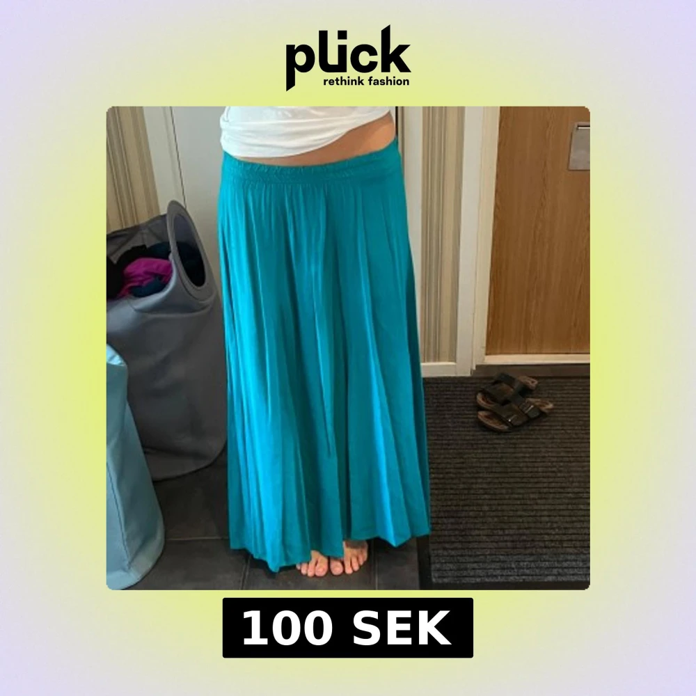 Säljer en turkos långkjol då den krympte i tvätten. Skulle säga att den passar för någon som är 165 eller kortare.