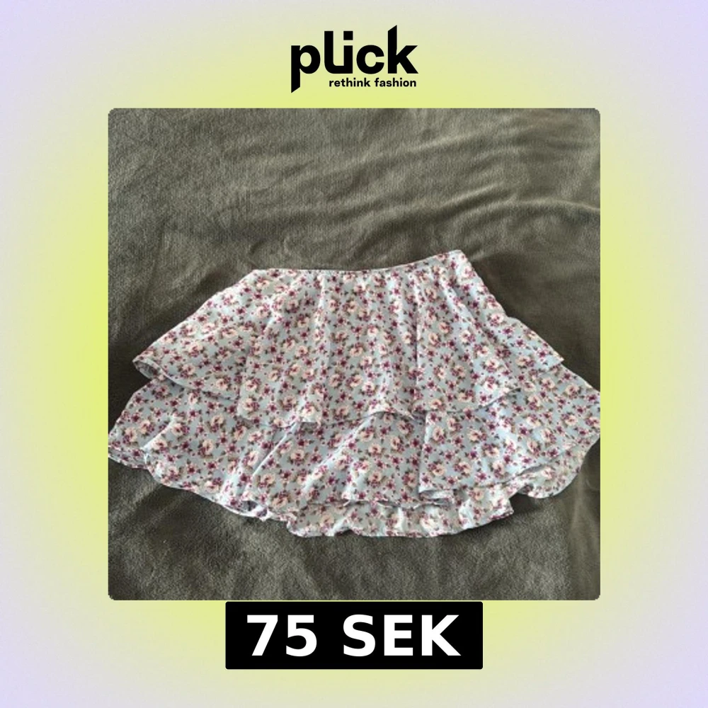 Supersöt kort volangkjol från Zara i ljusblått med blommigt mönster i rosa, lila och beige toner. Finns shorts under!! Kjolen har flera lager volanger som ger en flowy känsla och elastisk midja för extra komfort. Perfekt för dig som gillar romantisk och feminin stil.