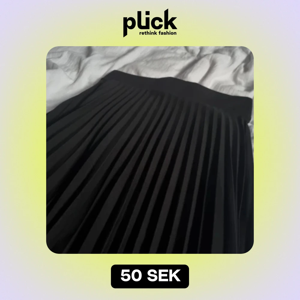 Svart veckad kjol med resårband. Är osäker på storleken, men skulle gissa på S men passar för XS.