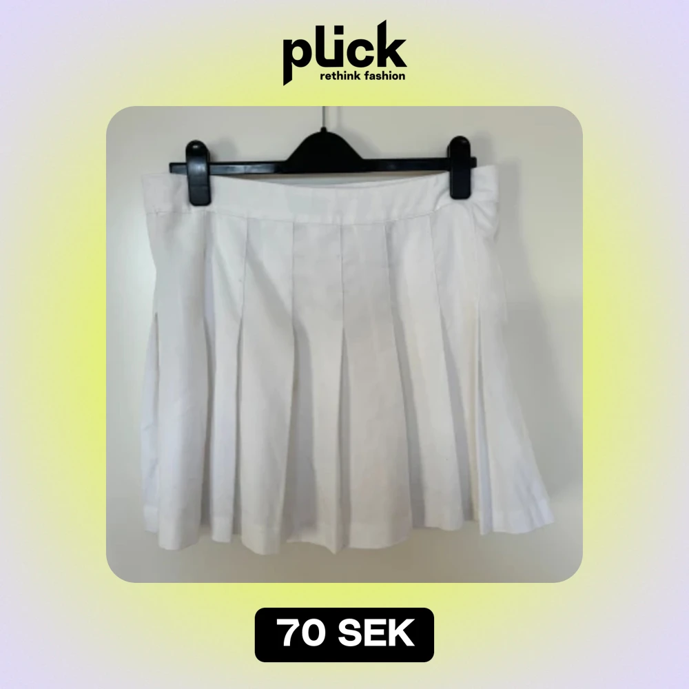 Vit veckad kjol/tenniskjol med gömd dragkedja på sidan