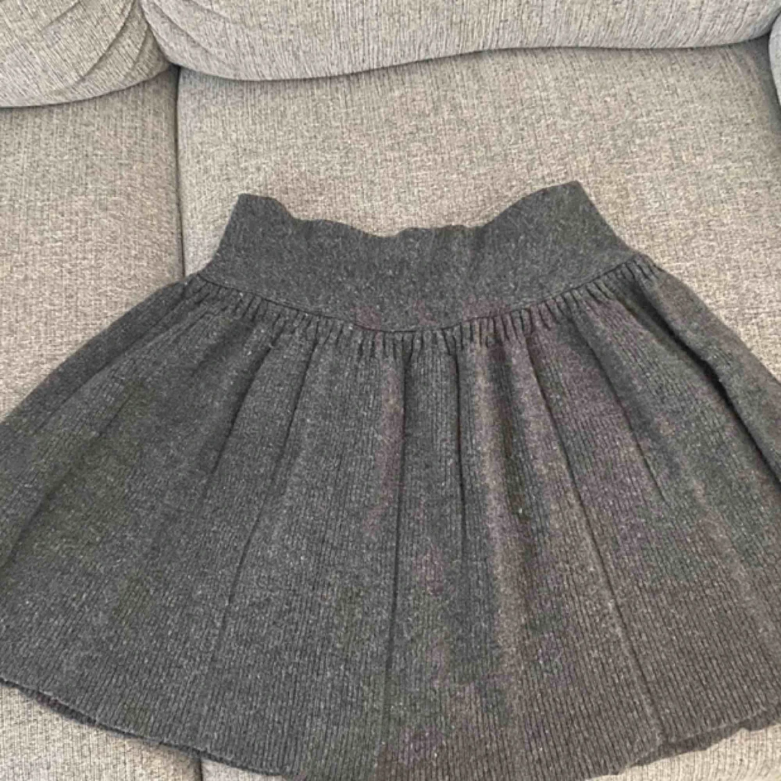Blå jeanskjol från H&M - Säljer en blå lågmidjad jeanskjol från HM med två fickor och dubbla silverknappar. Kjolen har klassisk denimlook med slitningar och kontrastsömmar. Perfekt för dig som gillar en avslappnad och trend sopad stil.