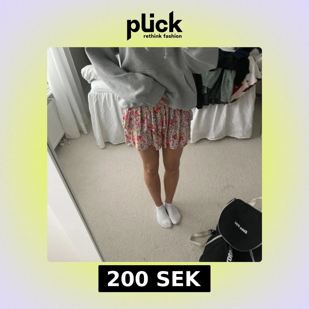 Söt blommig kortkjol från Vila i rosa, rött och grönt med volangdetaljer. Perfekt för en somrig look.