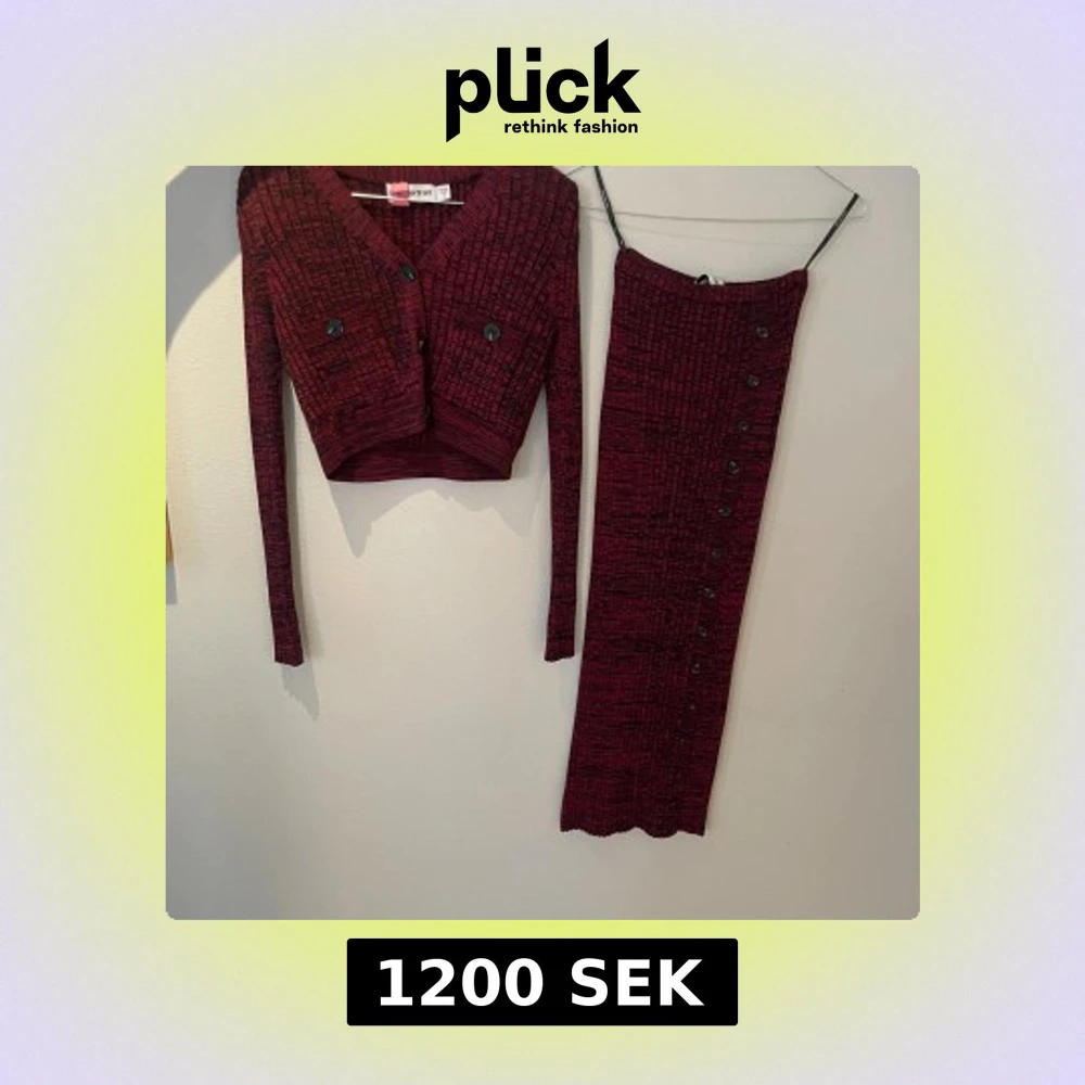 Säljer en vinröd långkjol från Portrait med svart ribbat mönster och knappar längs hela framsidan. Kjolen har en figurnära passform och är tillverkad i ett stretchigt, stickat material som känns mjukt mot huden. Perfekt för dig som gillar en stilren men edgy look.