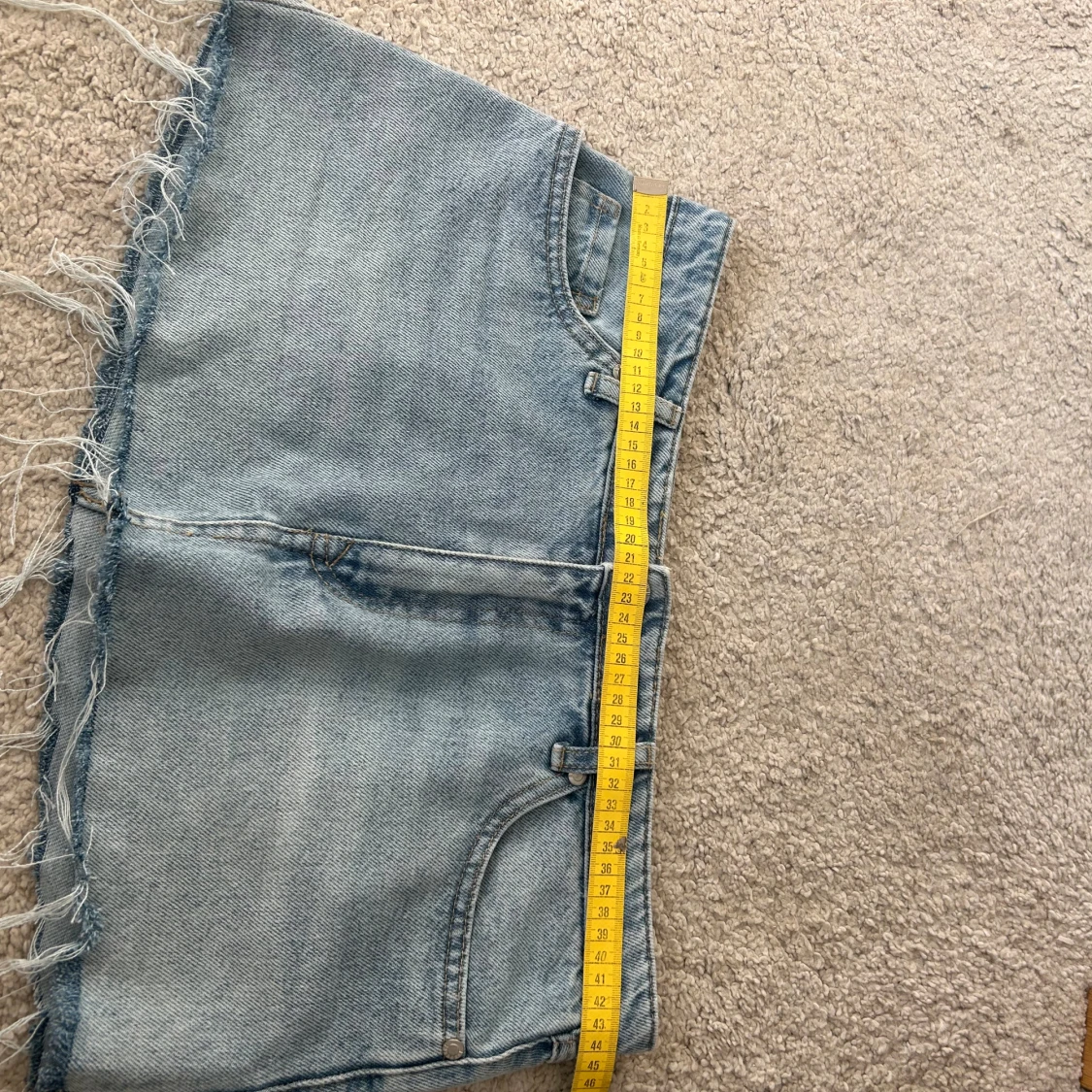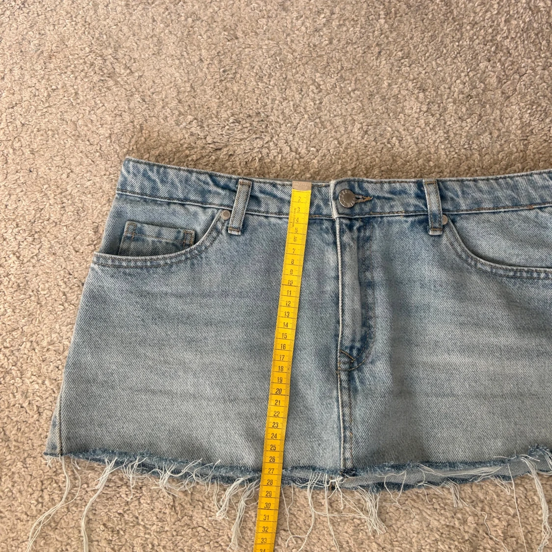 Säljer en ljusblå jeanskjol med rå, fransig nederkant och klassiska fickor fram och bak. Kjolen har en kort passform och är perfekt för dig som gillar en avslappnad och trendig stil. Dragkedja och knapp framtill. Superenkel att matcha med allt.