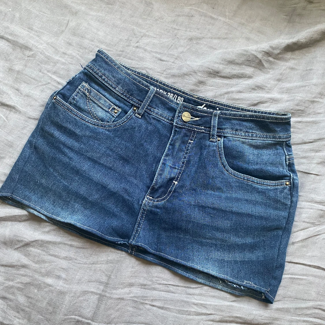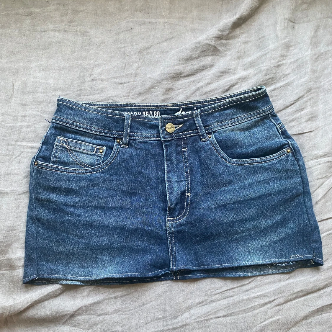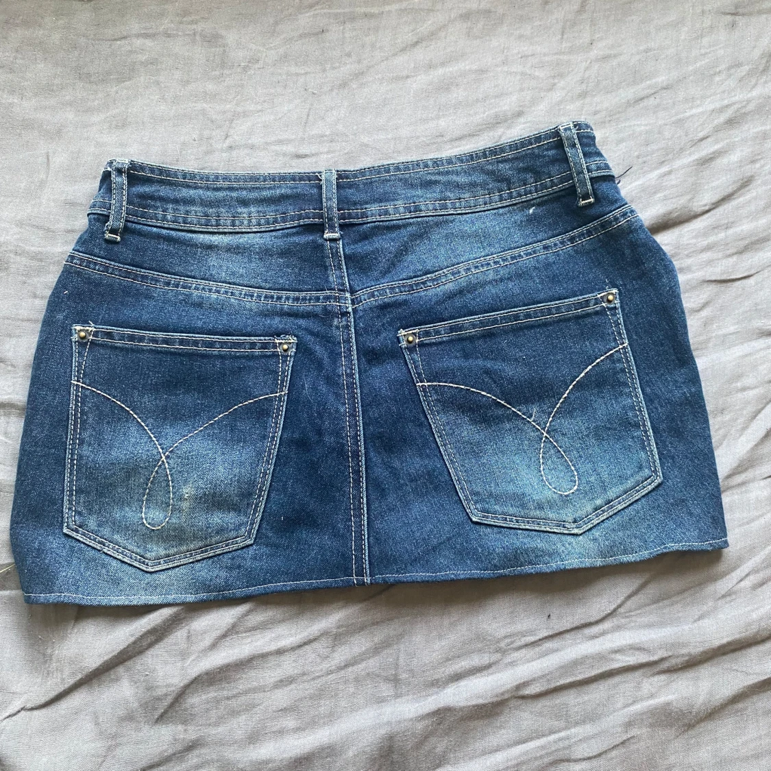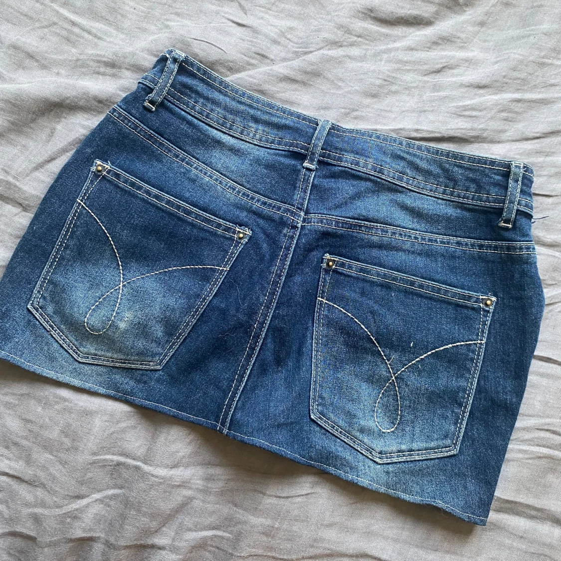 Säljer denna as snygga blå jeanskjol med coola och klassiska broderingar på bakfickorna från denim. Den har olika blå nyanser vilket är en så snygg detalj.