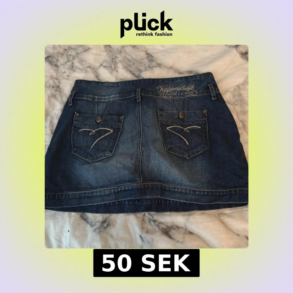 Snygg vintage mörkblå jeanskjol aldrig fått användning för:) storlek e lite oklar men skulle säga S eller M