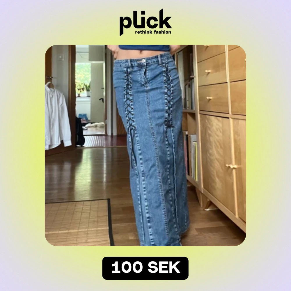 En fin långkjol i jeans. Stretchig och passar en Xs/s, står dock w28 men skulle säga 25/26.