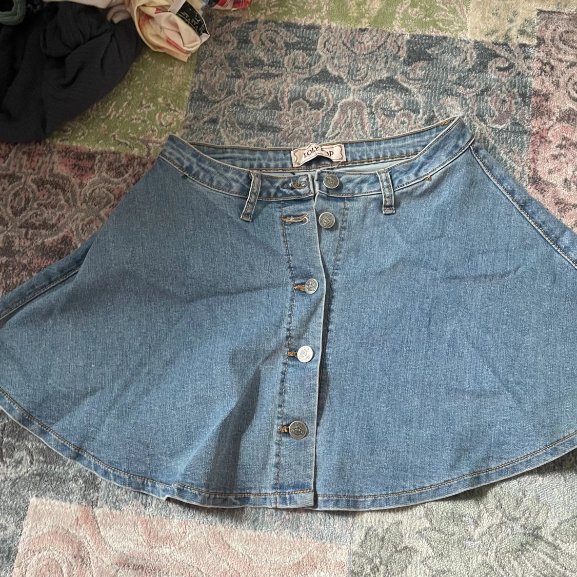 Säljer denna superfina jeans kjolen, den är tyvärr för liten så kan inte skicka bild på. Stretchigt tyg och super fina knappar!