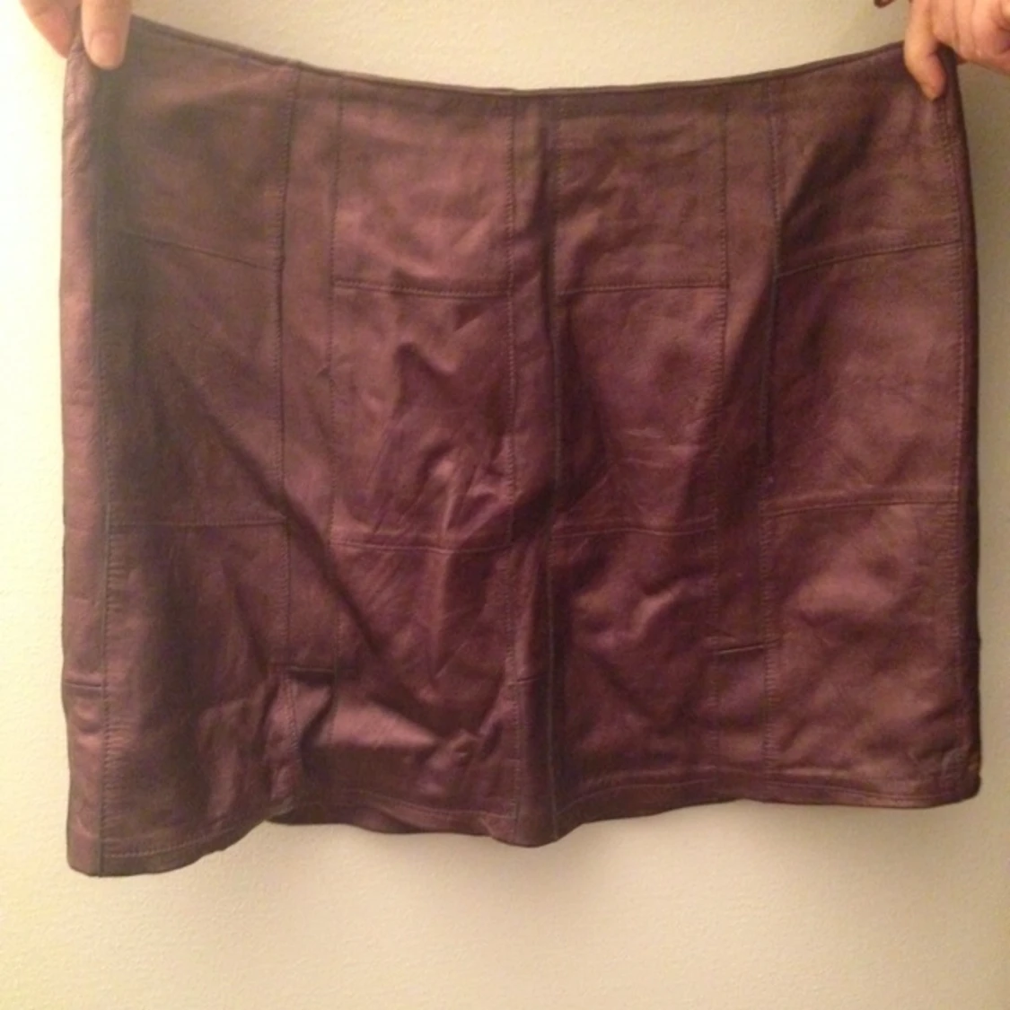 Vintage skinnkjol i lila/metallic. Skulle nog säga att den passar någon med cirka 36. Modellen är ganska kort, a-linjeformad och hänger strax ovanför höften.