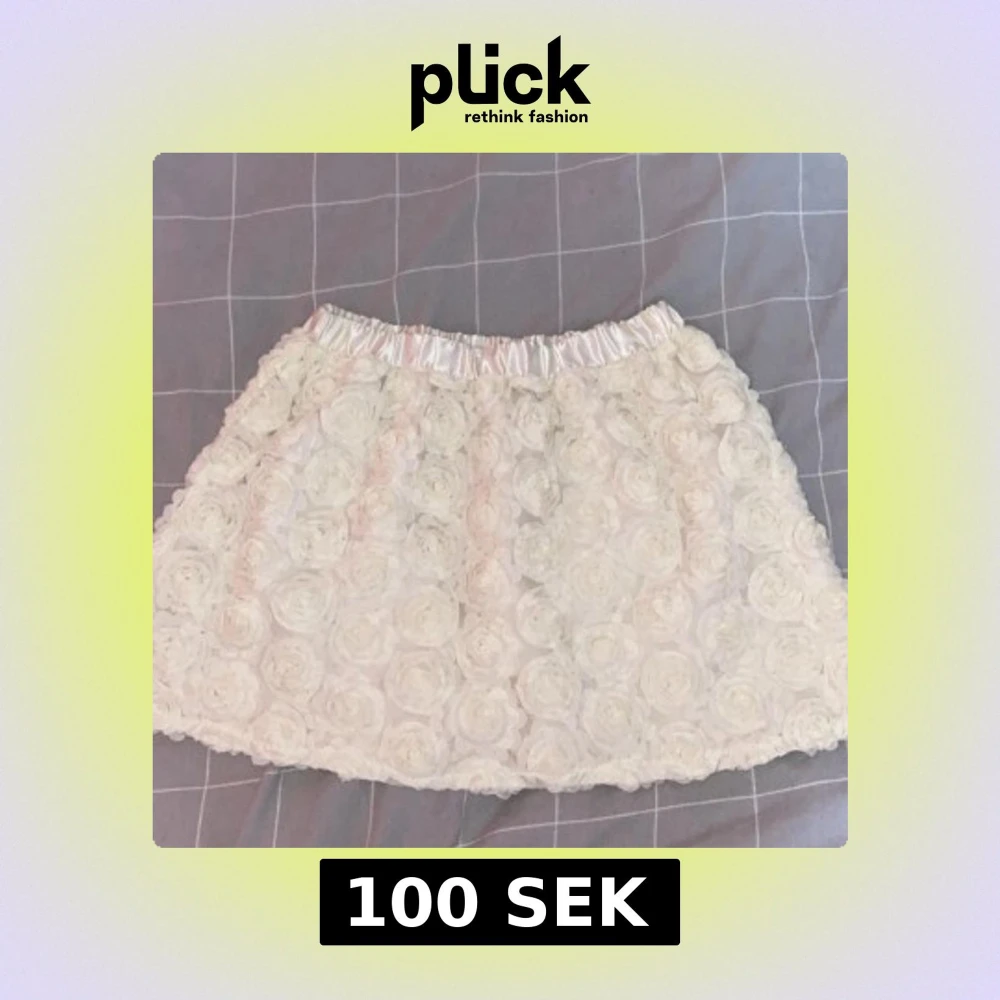 Supersöt vit kortkjol från Lindex med 3D-blommor över hela tyget och glansig resår i midjan. Kjolen har en fluffig look och passar perfekt när du vill sticka ut med en unik och romantisk stil. Perfekt för dig som gillar detaljer och blommigt.