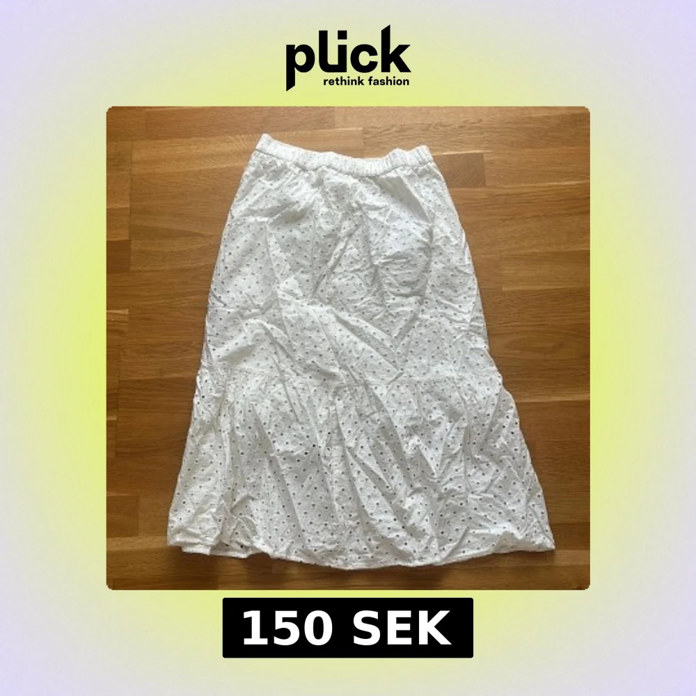 Superfin vit långkjol från Lindex med broderade hålmönster och resår i midjan. Kjolen är luftig och har en lätt volang nedtill, perfekt för varma dagar. Tillverkad i bomull och passar dig som gillar en romantisk och somrig stil. Väldigt bra skick, inga defekter! 🥰