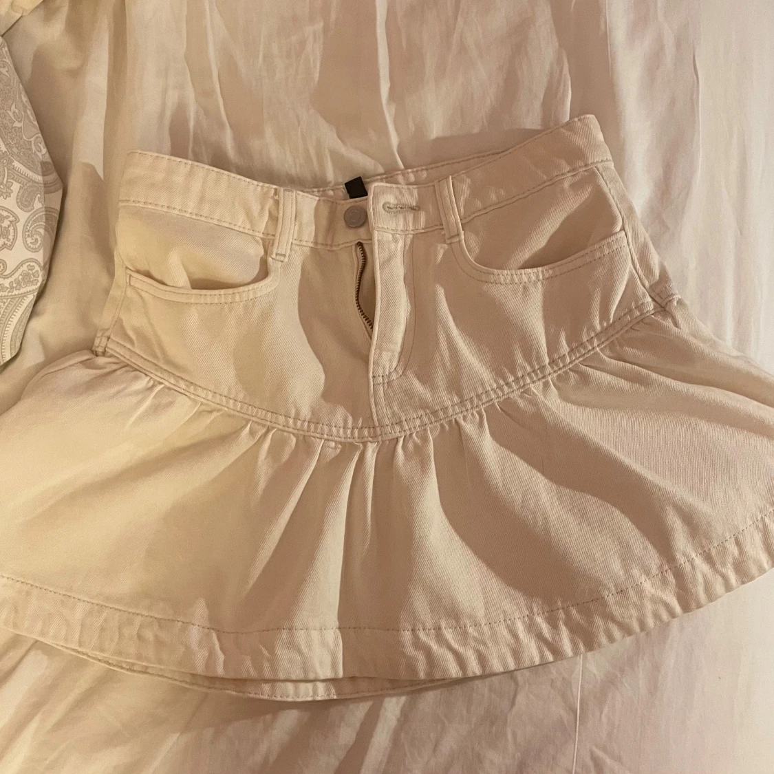 en jättefin volang jeanskjol från h&m. Den är använd 2 gånger och är storlek 34. Säljer pågrund av att jag inte använder den så mycket🩷🩷skriv gärna om ni har frågor eller är intresserade🩷🩷