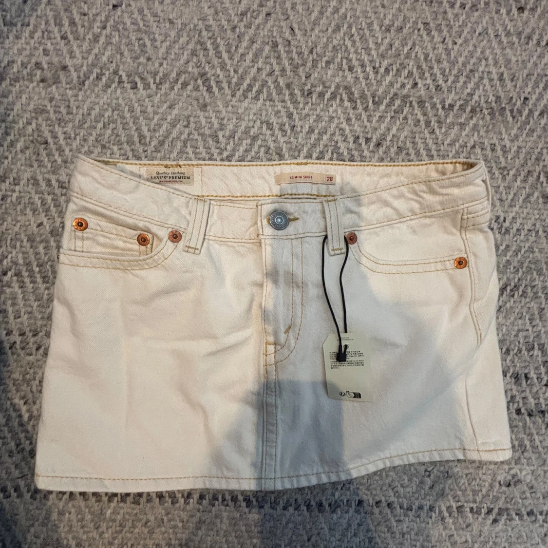 Säljer en helt ny vit jeanskjol från Levi's, lågmidjad!!!super fin, men passade inte mig i storlek.