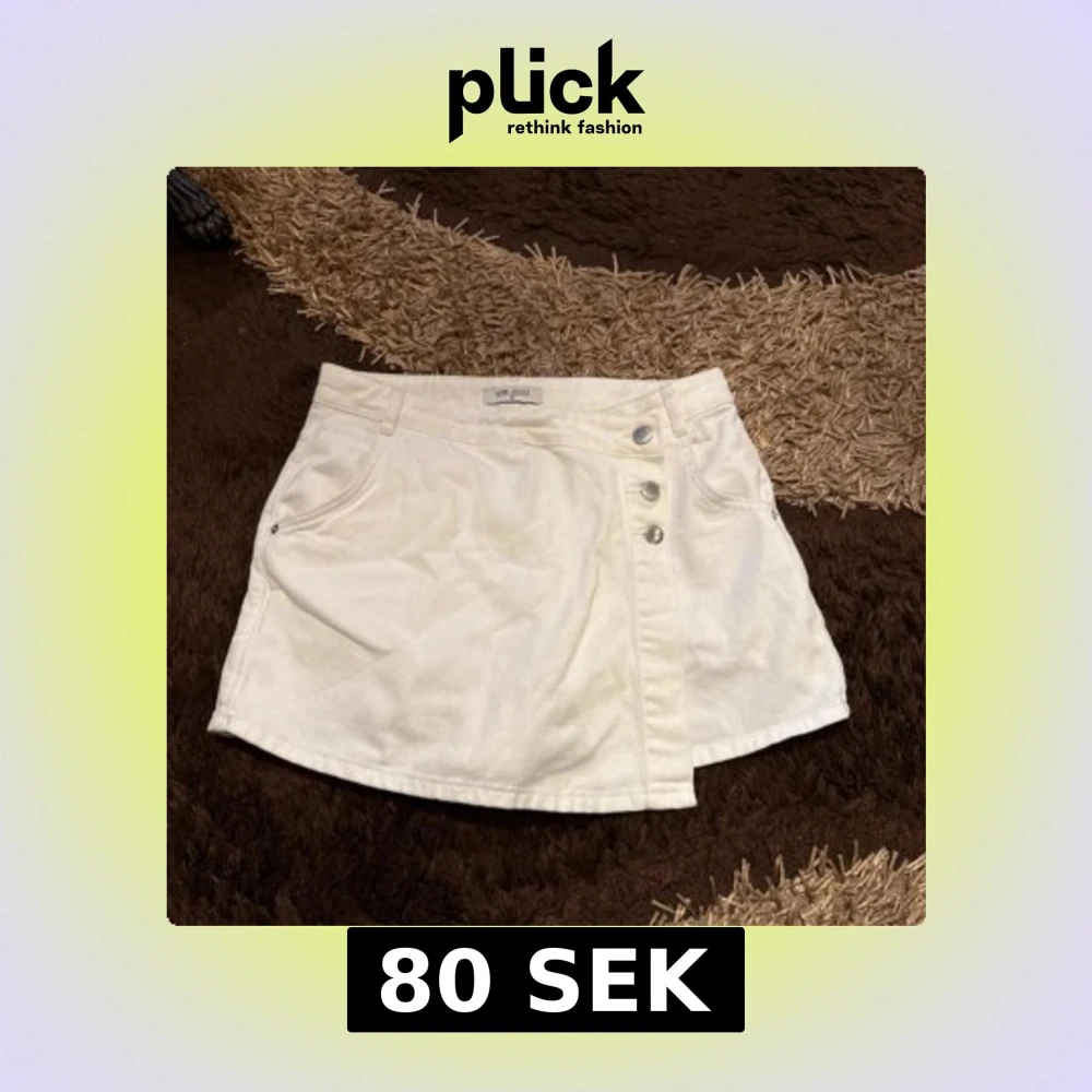 Säljer en vit jeanskjol med inbyggda shorts alltså en skort kallas det för, använt bara ett fåtal gånger alltså 2-3 gånger samt köptes utomlands i en butik som heter LCW. Samt i storlek M och säljs för 80kr.