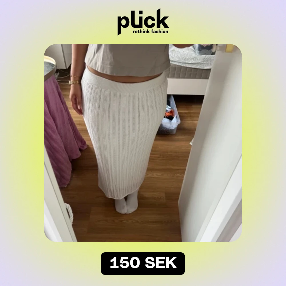 Jätte fin stickad vit kjol från lindex i storlek M. Säljer då den inte kommer till användning längre🩷 Se defekter på bild 2, där av pris!