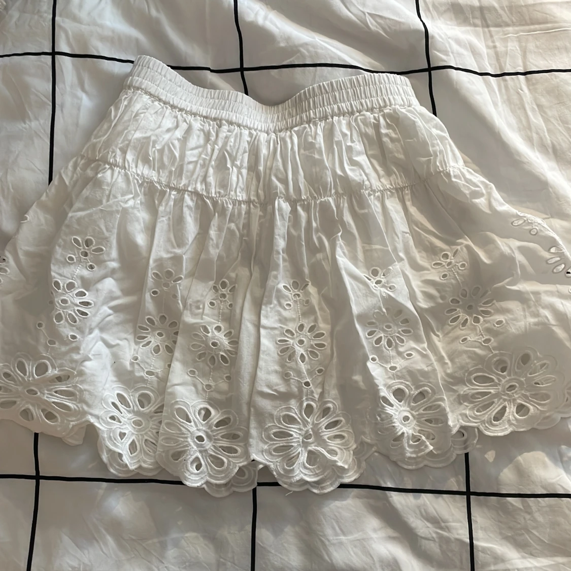 Säljer en söt vit kjol från Zara med broderade blommor och inbyggda shorts!