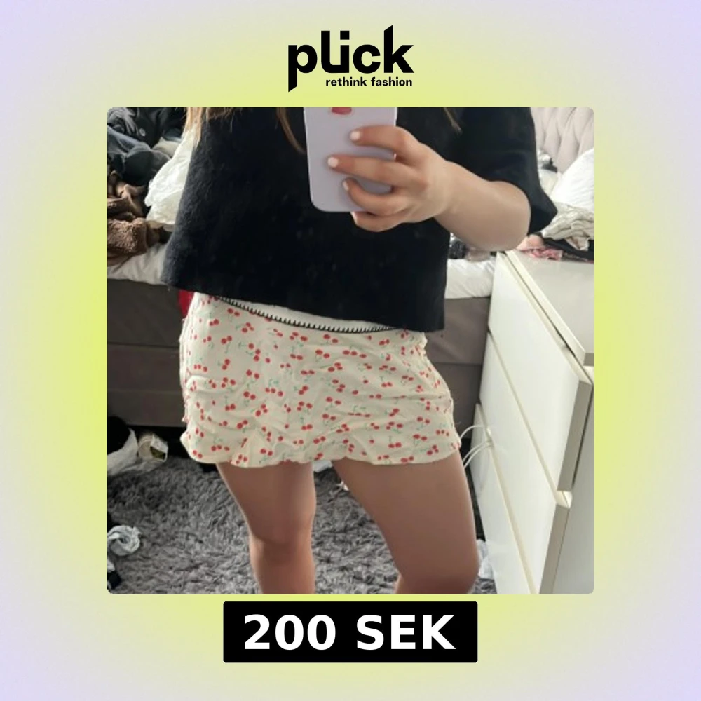 Supersöt vit kjol från Zara med rött körsbärsmönster och volangdetaljer. Kjolen är kort och har en lätt, flowy känsla som passar perfekt till varma dagar. Resår i midjan för extra komfort.