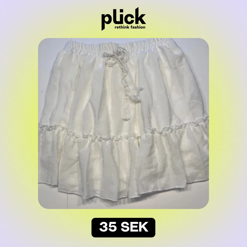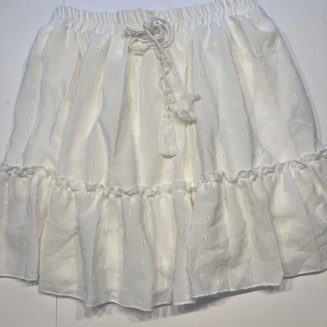 Fin vit kort kjol med insydd underkjol. Resår i midja. Använd endast 1 gång, nyskick!