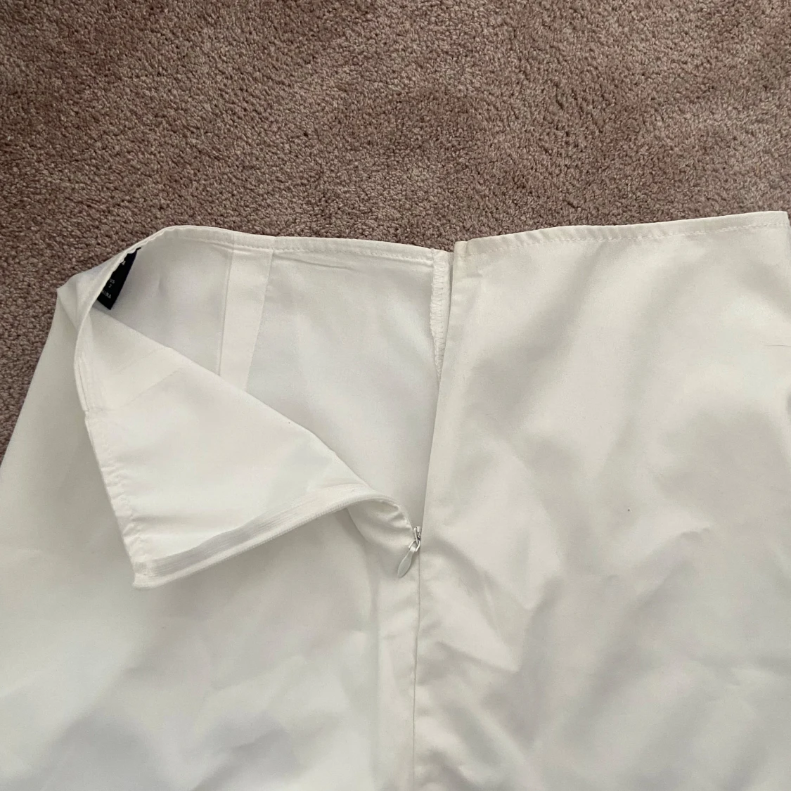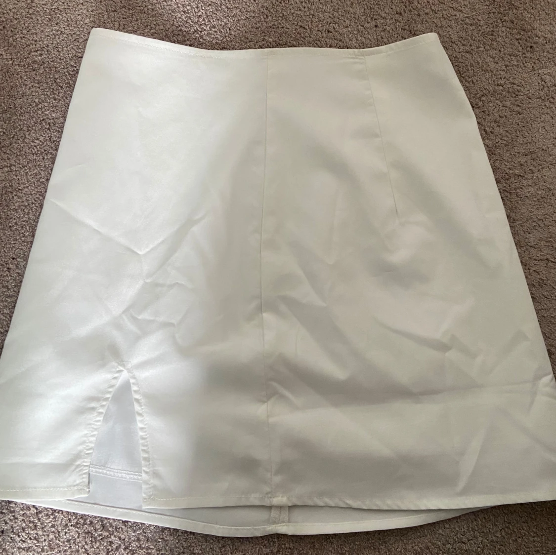 Vit kort kjol från Shein Storlek XS. Dragkedja där bak. En litet slits på ena sidan. Bra skick. Använd 1 gång.