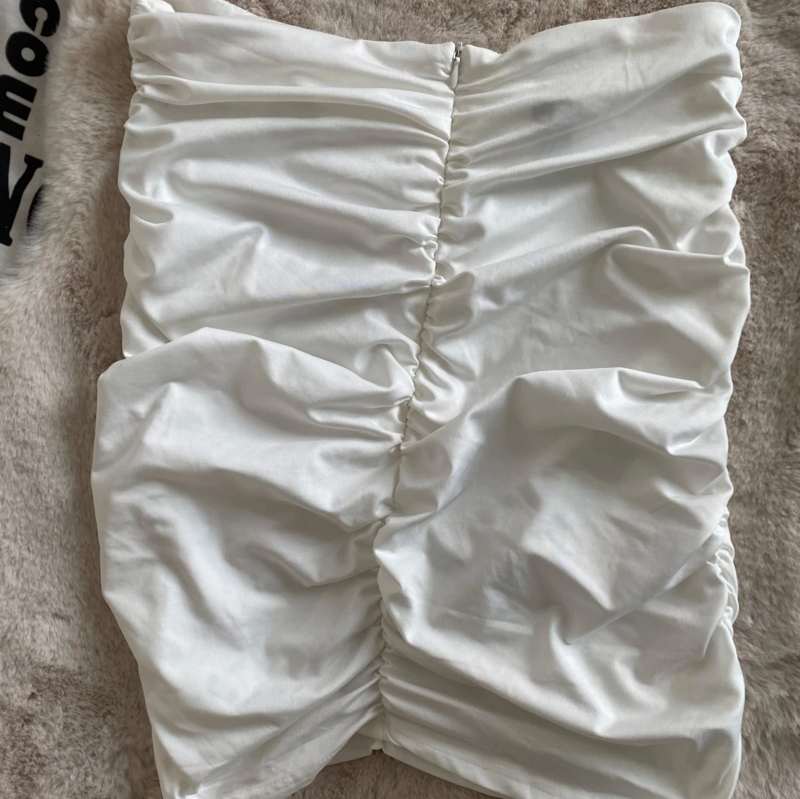 Säljer en stilren vit kortkjol med snygga rynkdetaljer. Kjolen har en tight passform och är perfekt för att skapa en chic look. Materialet är mjukt och bekvämt, vilket gör den idealisk för varmare dagar.