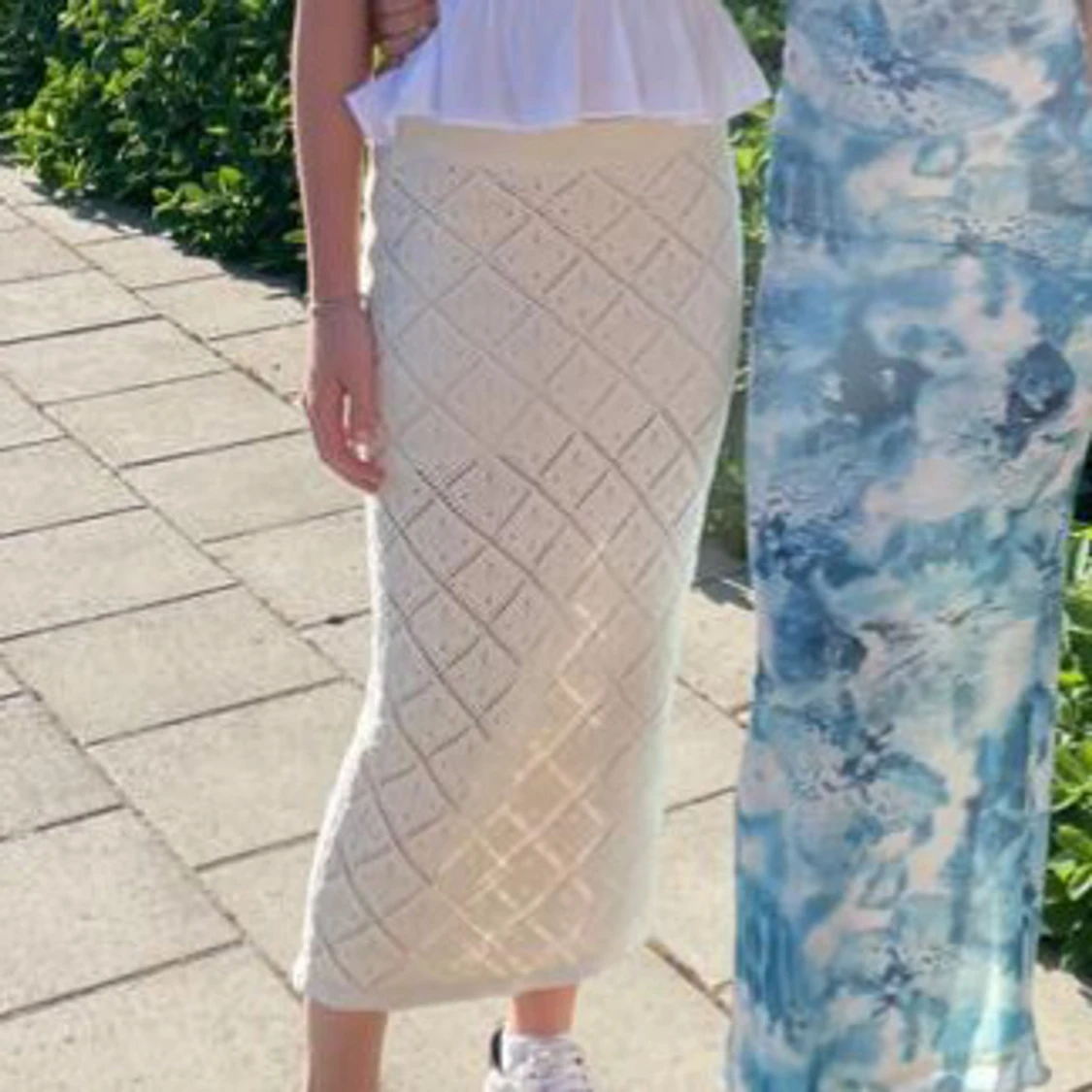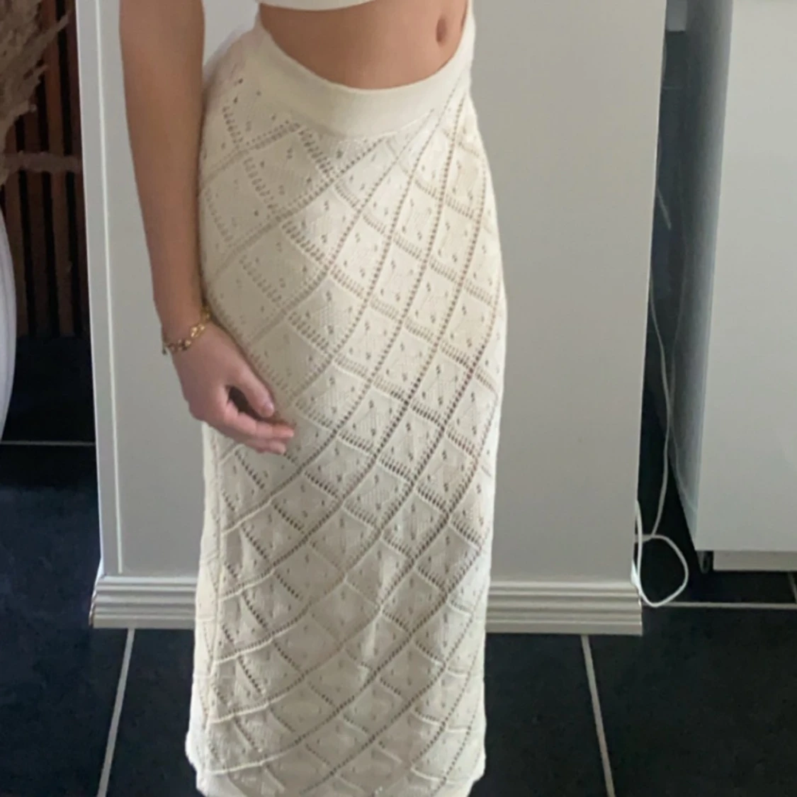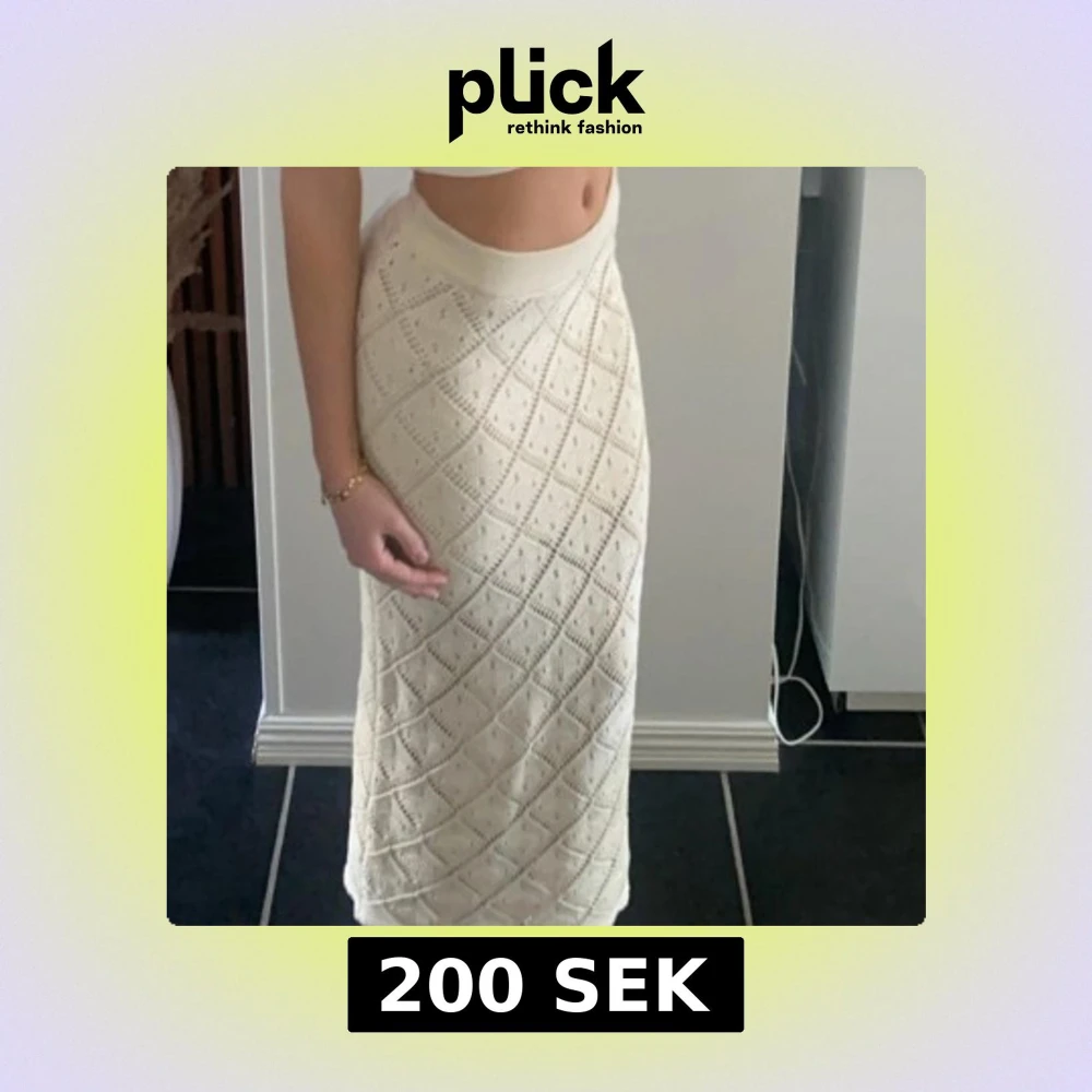 Supersnygg lång kjol i stickad bomull med hålmönster i rutigt diamantmönster från Gina Tricot . Kjolen är vit och har en mjuk, elastisk midja som sitter bekvämt. Perfekt för sommarens alla tillfällen och ger en chill och trendig vibe. Skriv för fler bilder eller frågor!