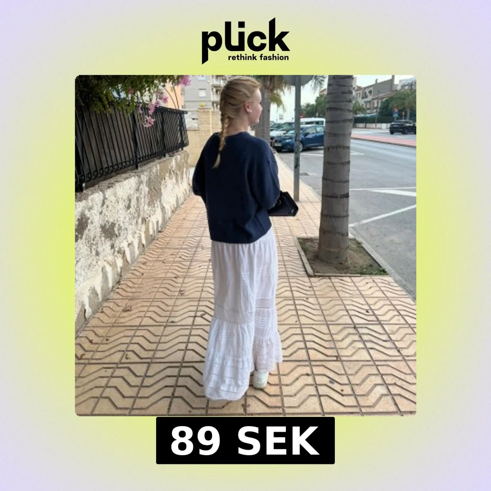 Supersöt vit långkjol från Lindex med smockad midja och volanger. Kjolen har broderade spetsdetaljer och tunna ränder som ger en boho-vibe. Perfekt för varma dagar och chill häng. Tillverkad i mjuk bomull som känns skön mot huden.