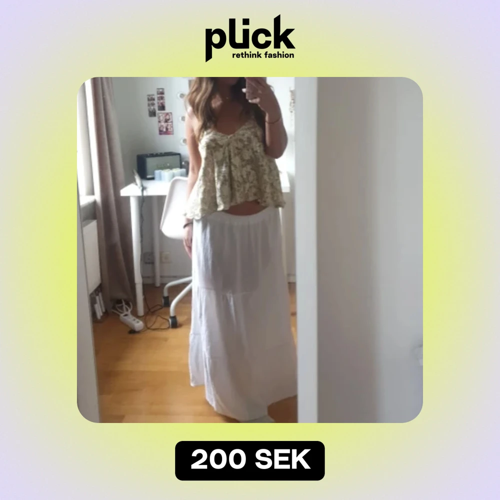 Jättefin vit långkjol som är köpt i Spanien. Lite genomskinlig som syns på bild 2. Jättefin till sommarn! Passar allt från xs-m💕