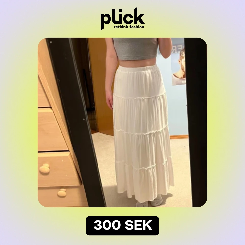 Vit långkjol/maxikjol i modellen ”Izzy” från Brandy Melville. Storlek onesize men passar XS-M då den är stretchig!