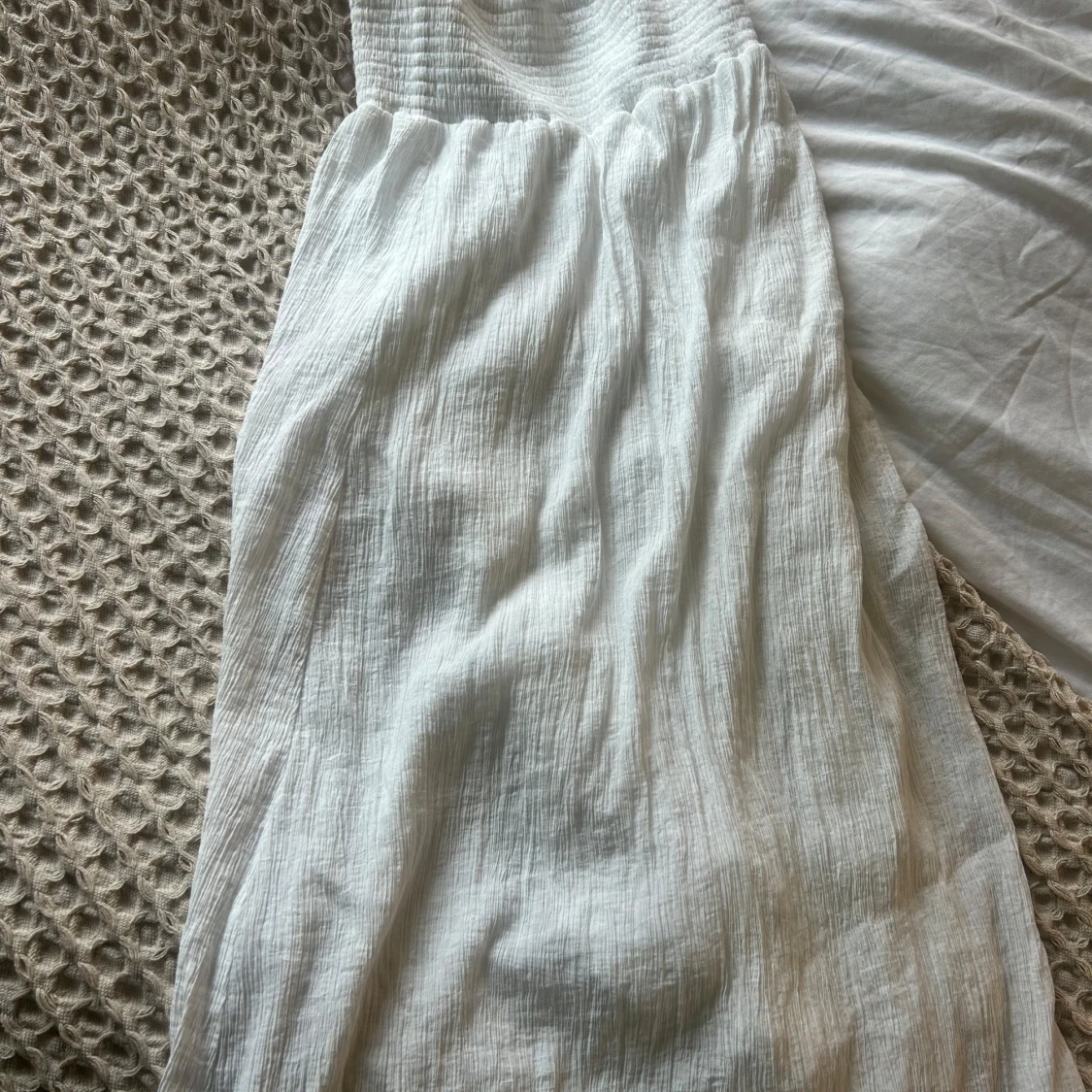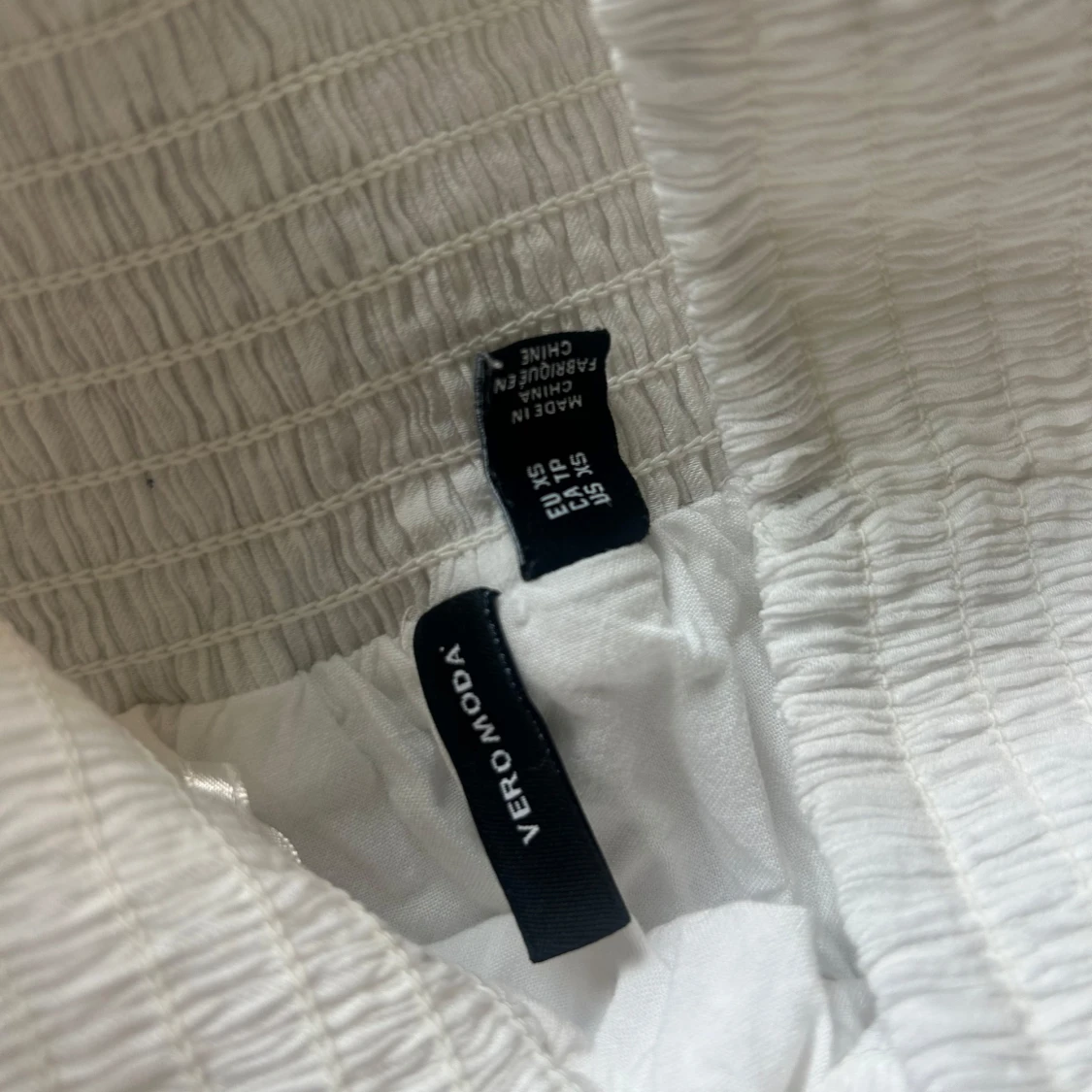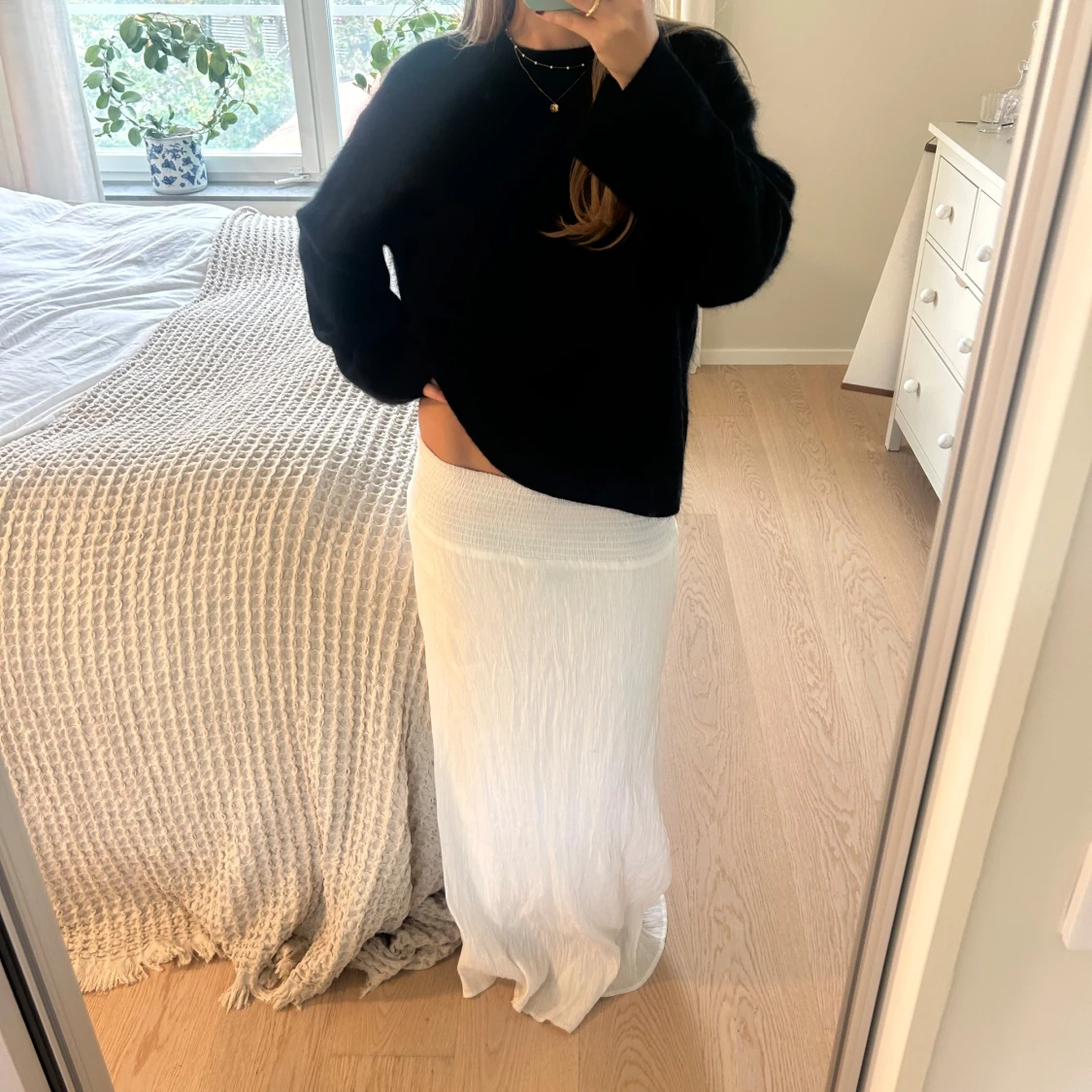 Säljer en vacker vit långkjol från Vero Moda. Materialet är luftigt med ett unikt mönster. Passar med en färgglad tjocktröja, T-shirt och Basic kläder. Den kan användas under midsommar eller andra högtider och firanden 🎉Inga fläckar eller slitage 💞💞