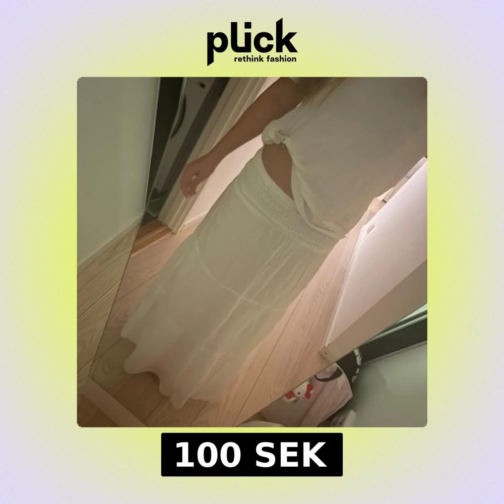 Säljer en vit långkjol med smockad midja och lätt, flowigt tyg. Den är jätte bekväm och fin ❤️