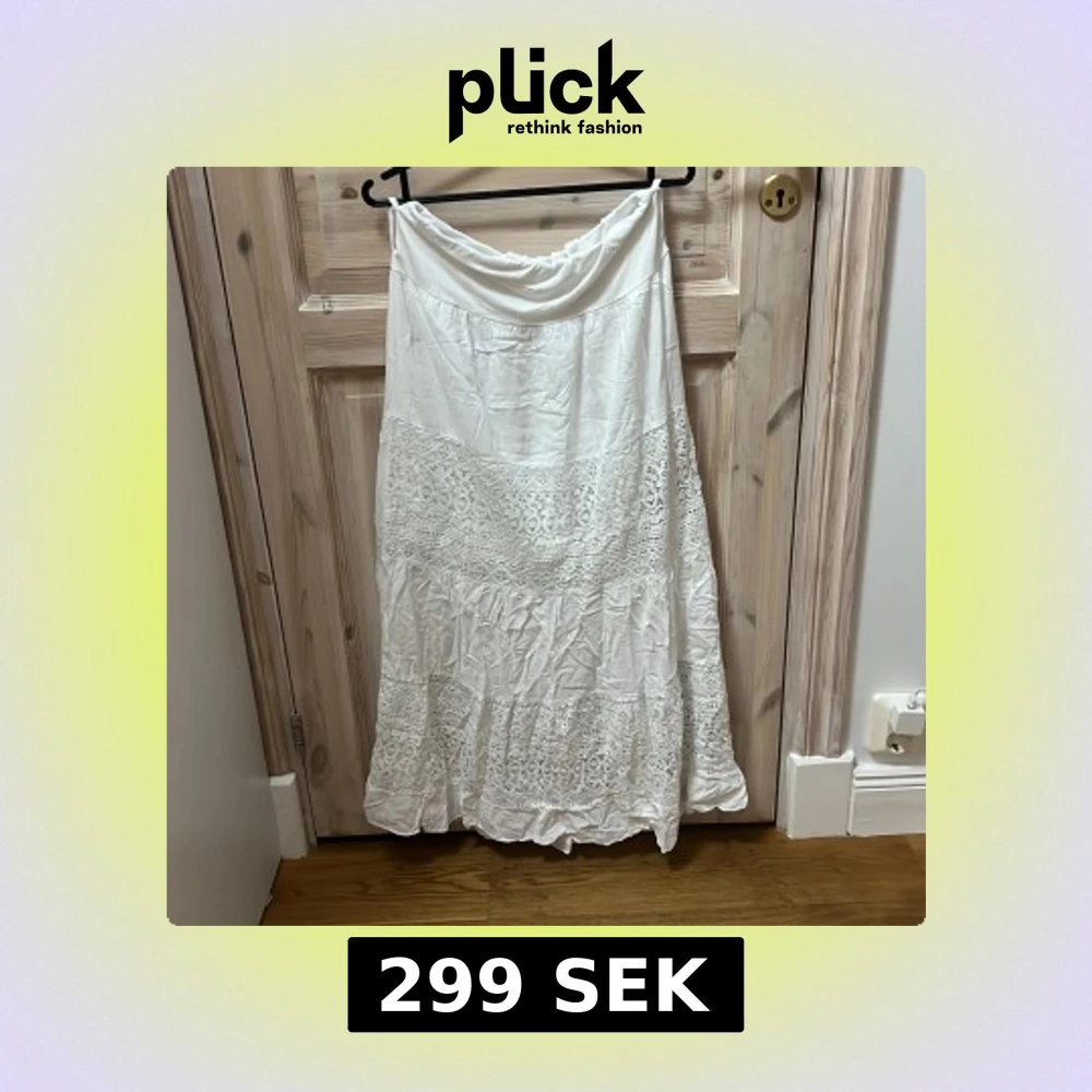 Charmig vit långkjol med vackra spetsdetaljer. Kjolen har en luftig och romantisk stil, perfekt för varma dagar. Den är designad med flera lager av spets och tyg som ger en fin volym. Köpt utomlands för ca 400kr o är för kort på mig som är 175 💕