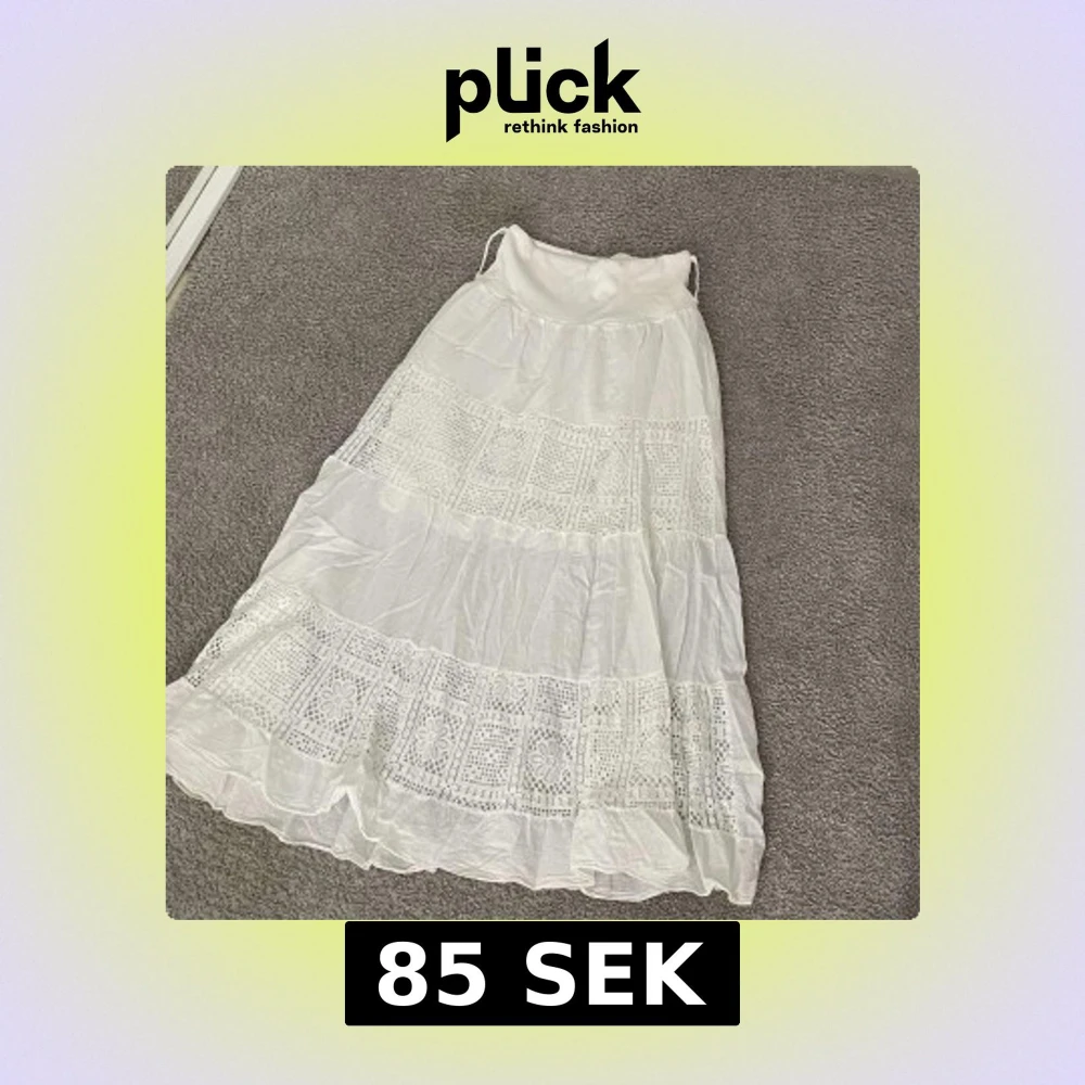 Supersöt vit långkjol med bred linning och flera lager. Kjolen har inslag av spets och broderade blommor i mönstret, vilket ger en romantisk och bohemisk vibe. Perfekt för varma dagar och chill häng. Materialet känns lätt och luftigt.