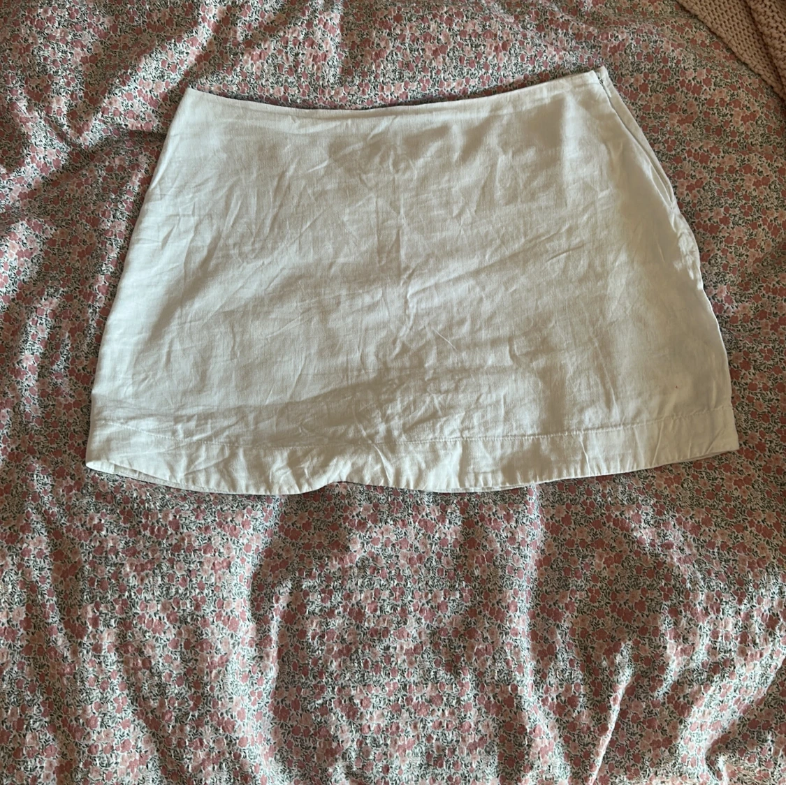 Superfräsch vit kortkjol från BikBok i linne. Enkel och clean design med rak passform och hög midja. Perfekt till varma dagar och lätt att matcha med allt. Snygg och stilren vibe!